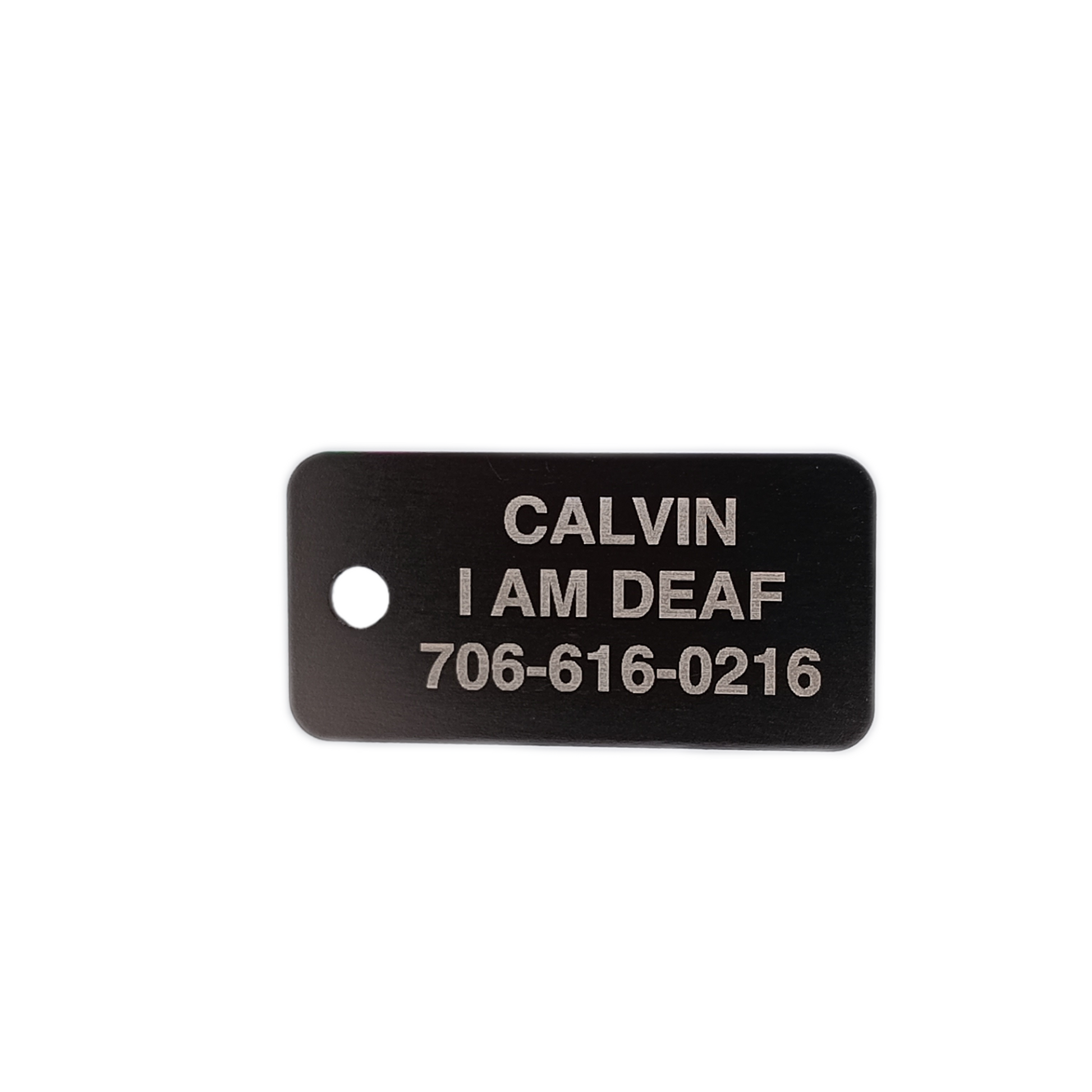 Name only: If you want the name as large as possible on one side of the tag, we will utilize all available space to engrave the name to make it look as nice as we can.