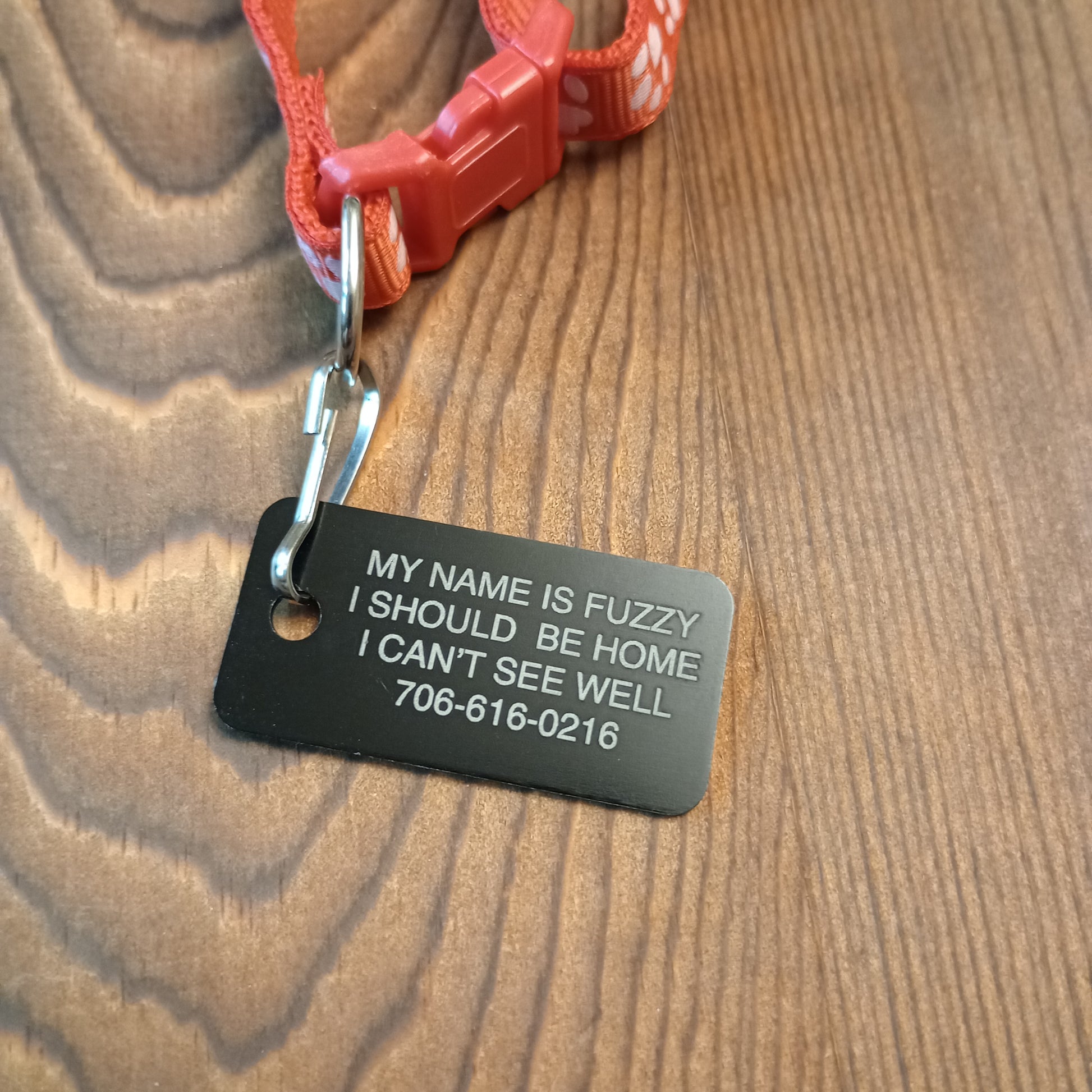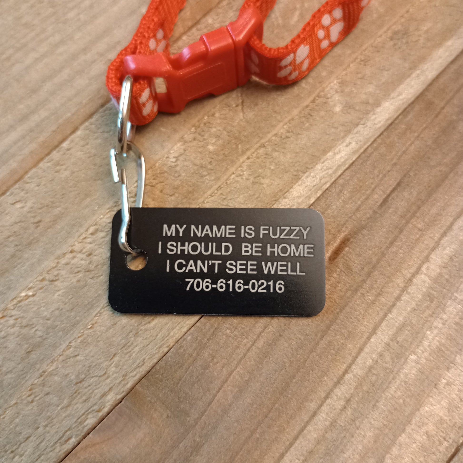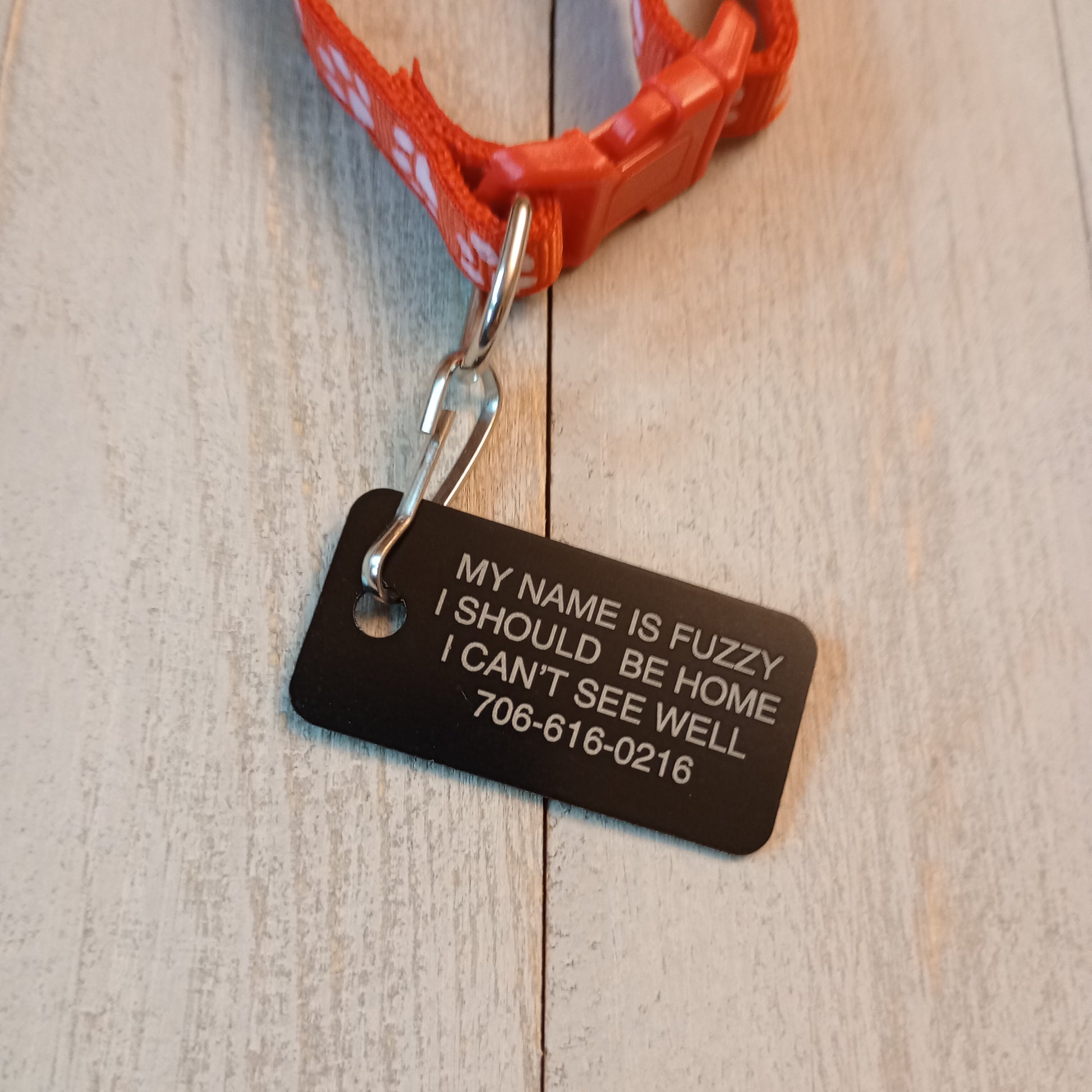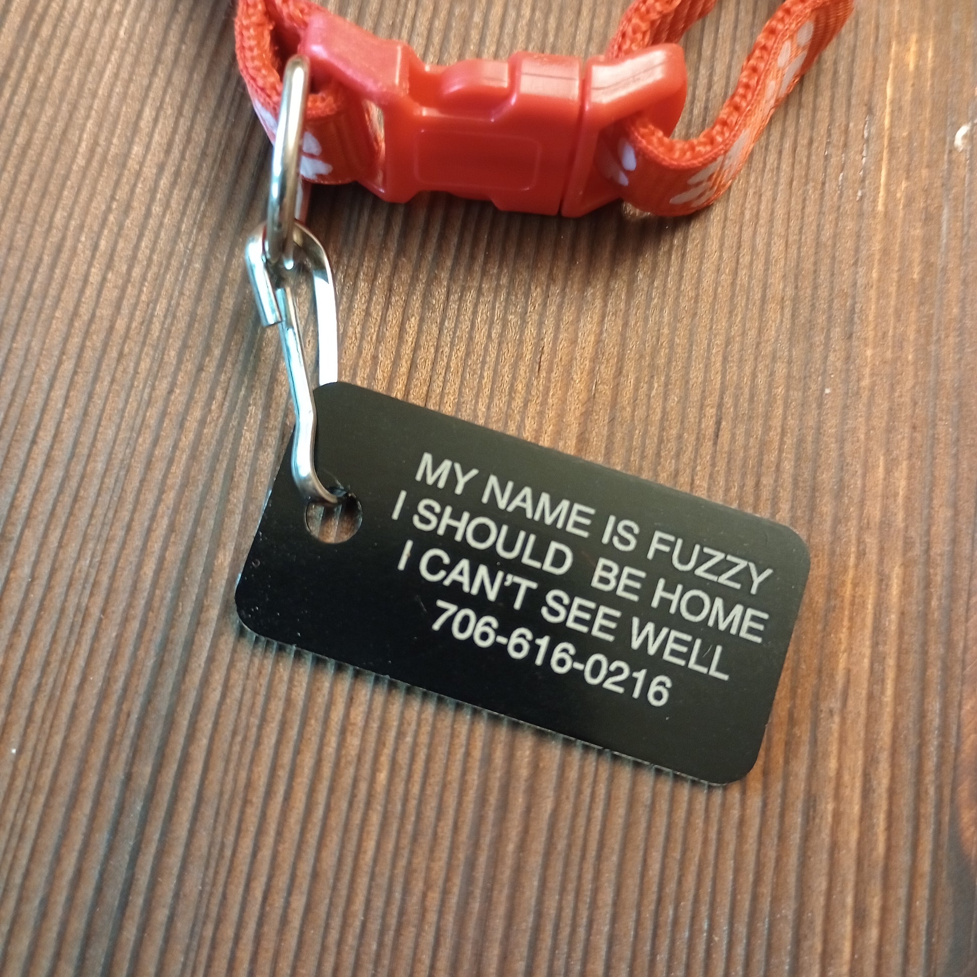 Making the name larger font size: If the tag allows for four lines and you use only three we will use the space from that extra line to make the name of the pet larger than the other lines of text.