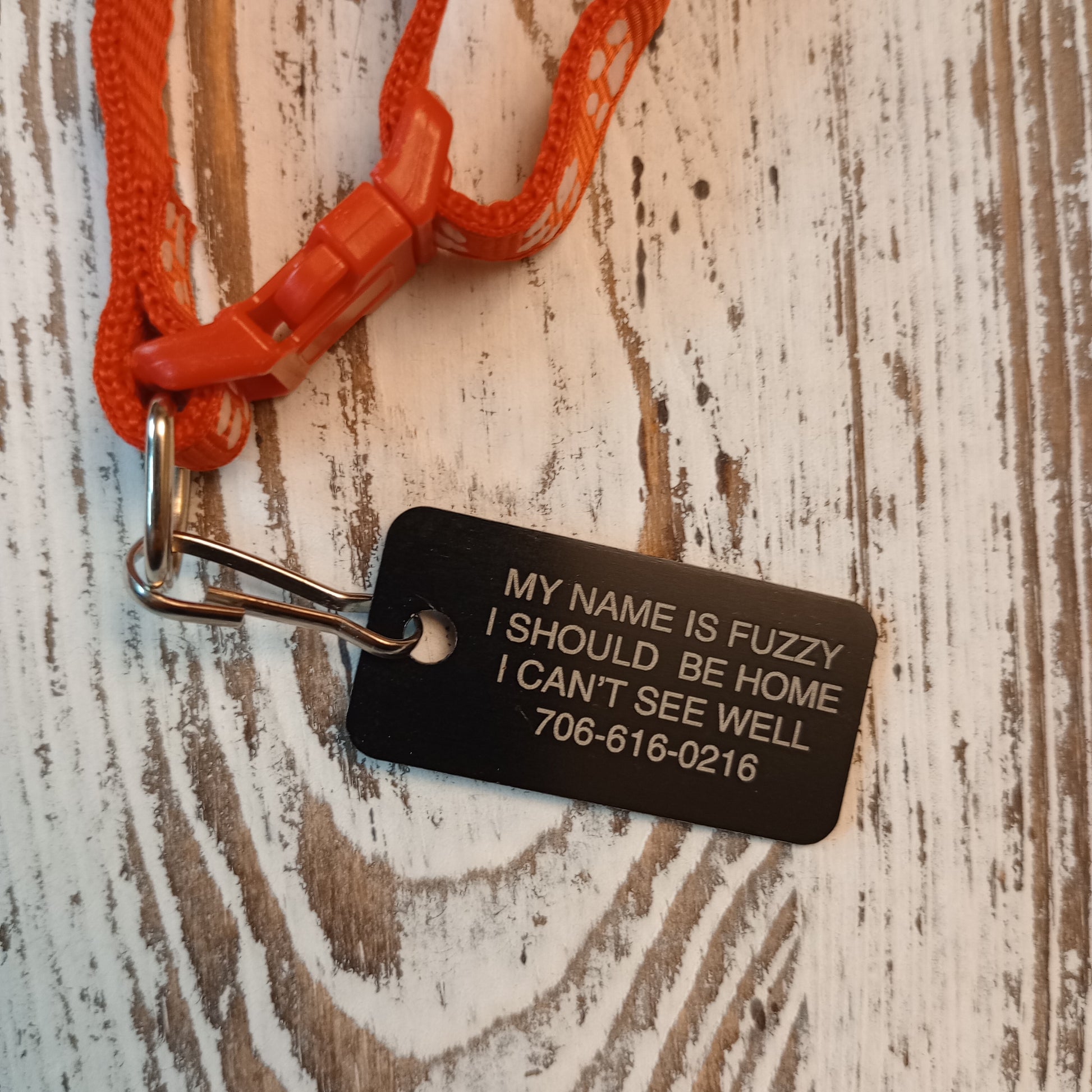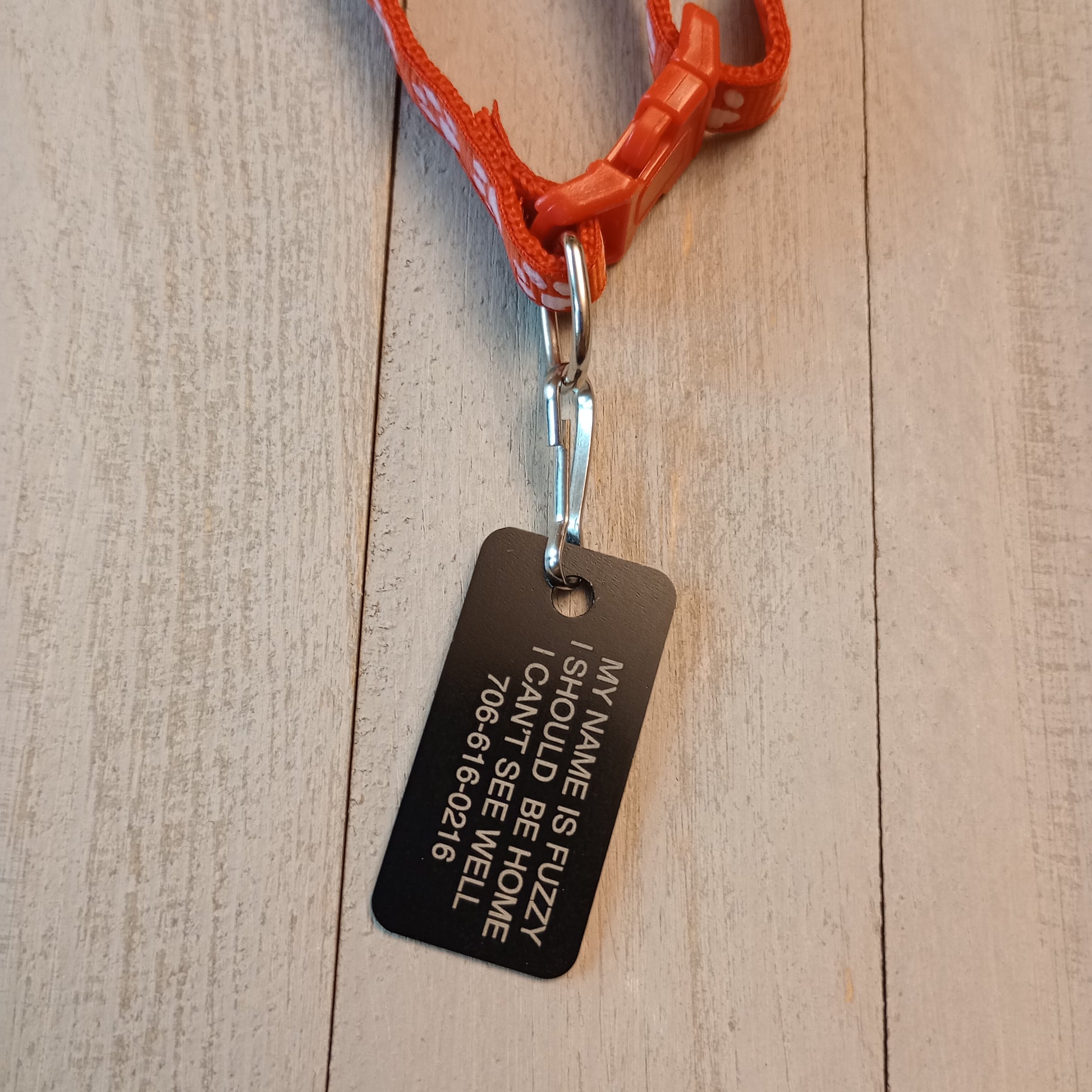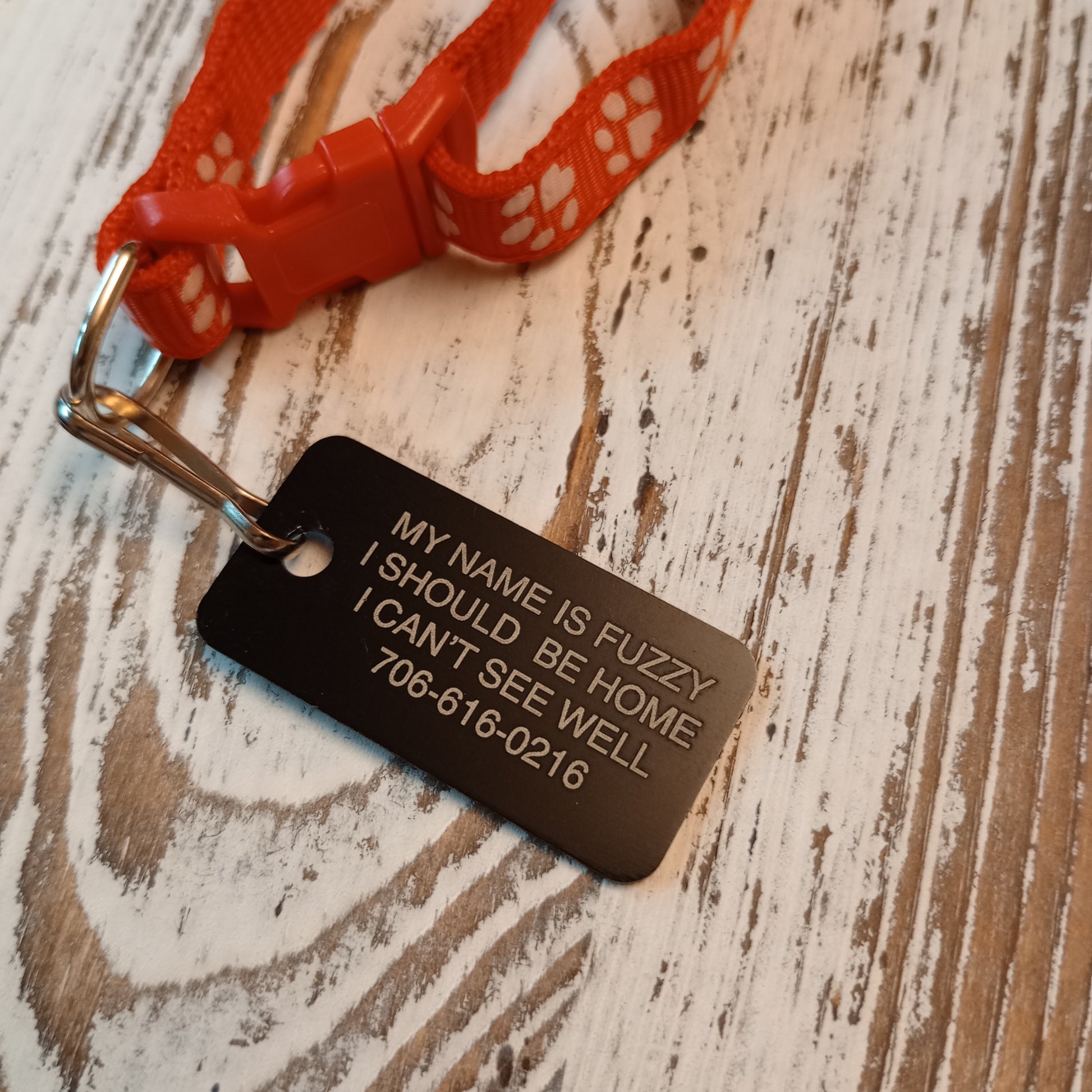 Making the name larger font size: If the tag allows for four lines and you use only three we will use the space from that extra line to make the name of the pet larger than the other lines of text.