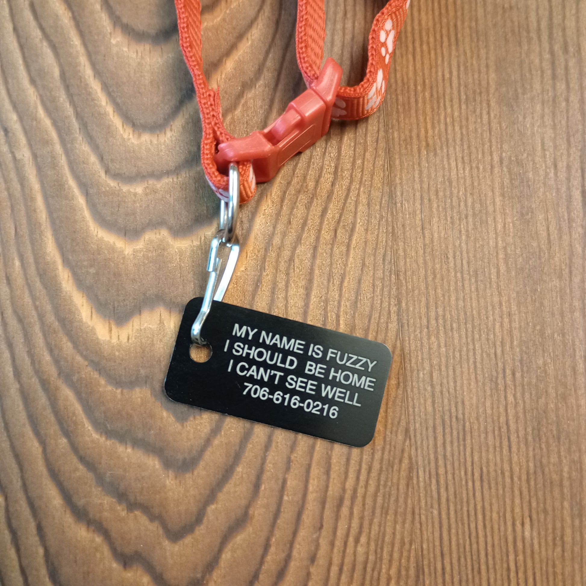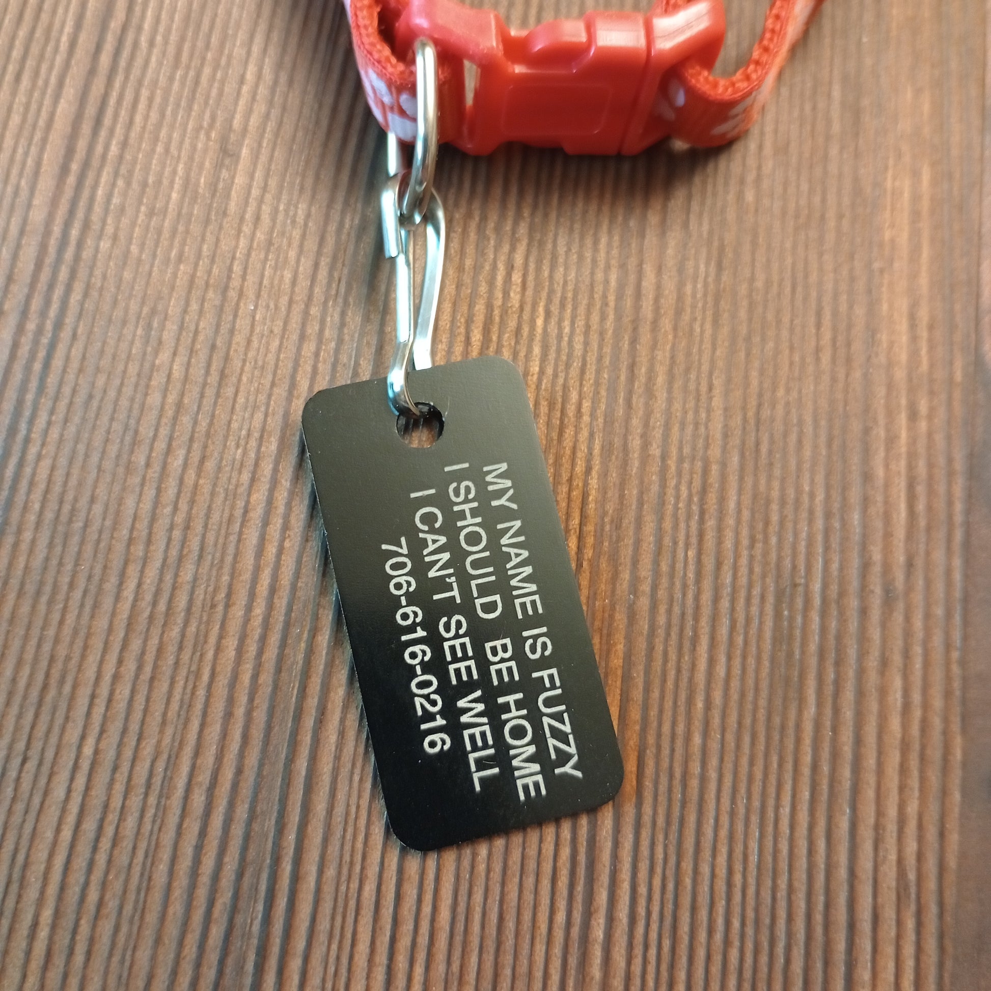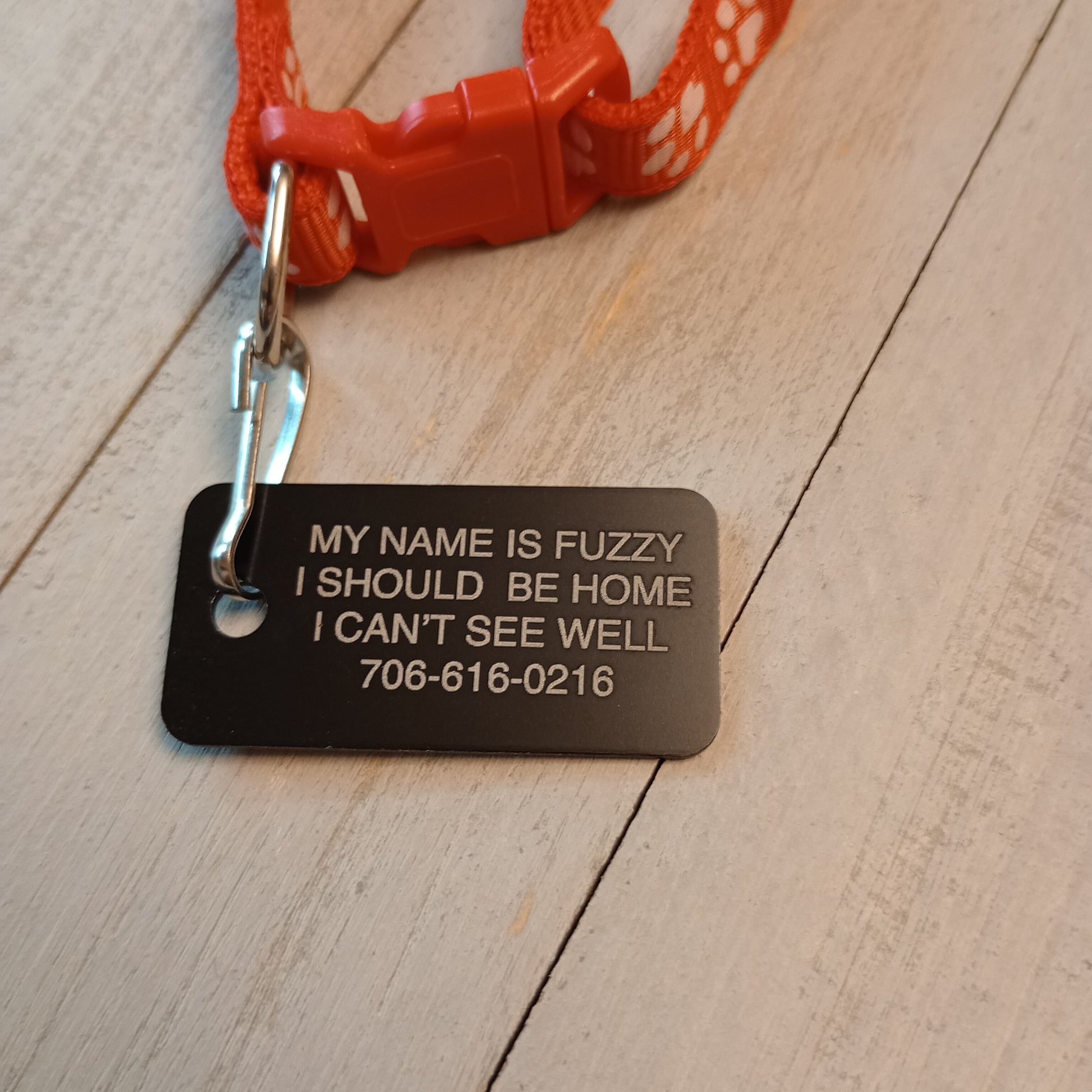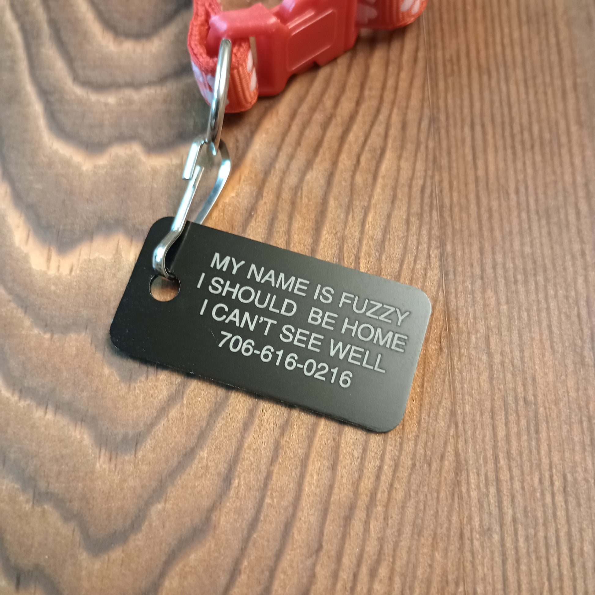 Making the name larger font size: If the tag allows for four lines and you use only three we will use the space from that extra line to make the name of the pet larger than the other lines of text.