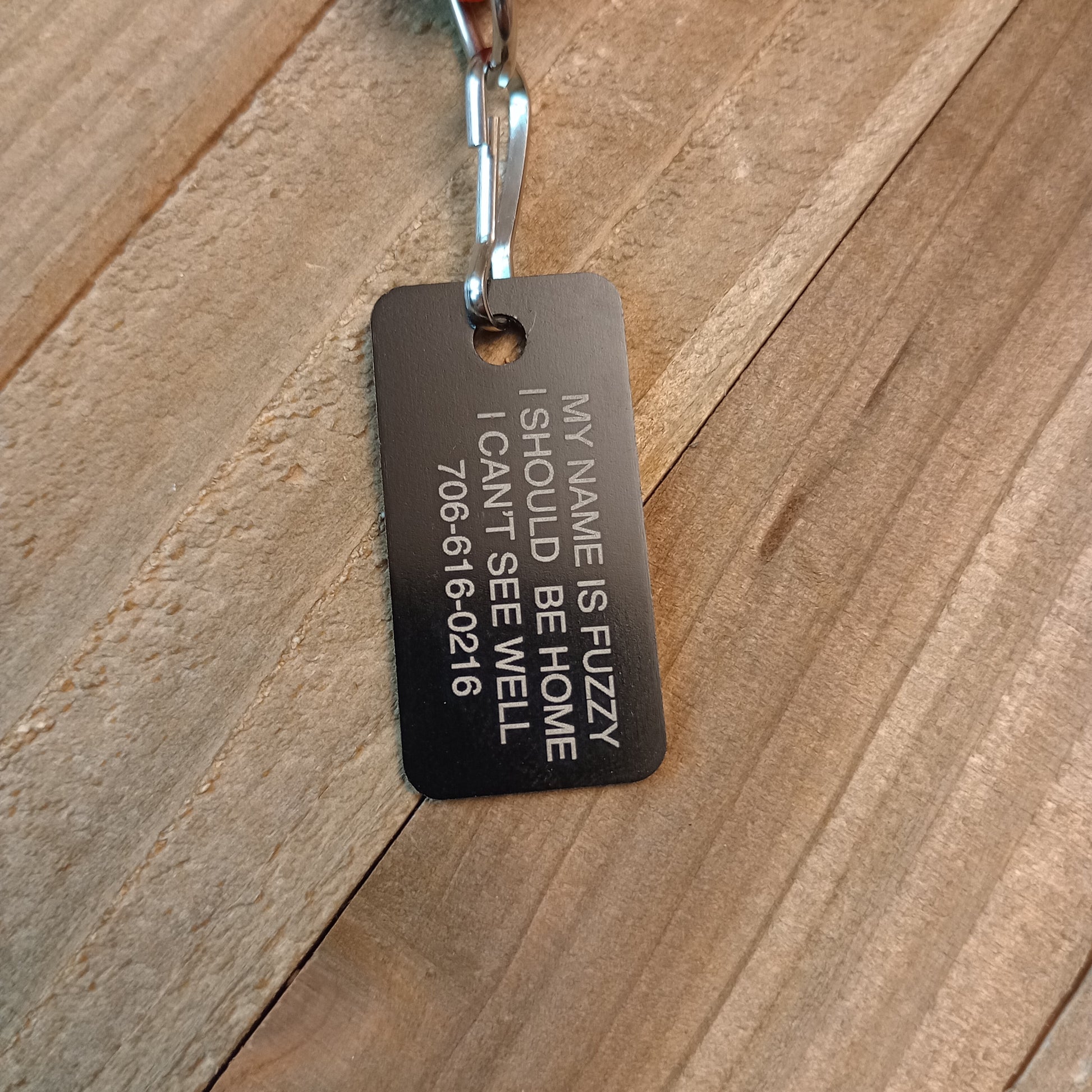 This Black Rectangular Pet Tag is anodized aluminum that allows for 4 lines of text to be engraved lengthwise on the front and 4 lines of text to be engraved lengthwise on the back.
