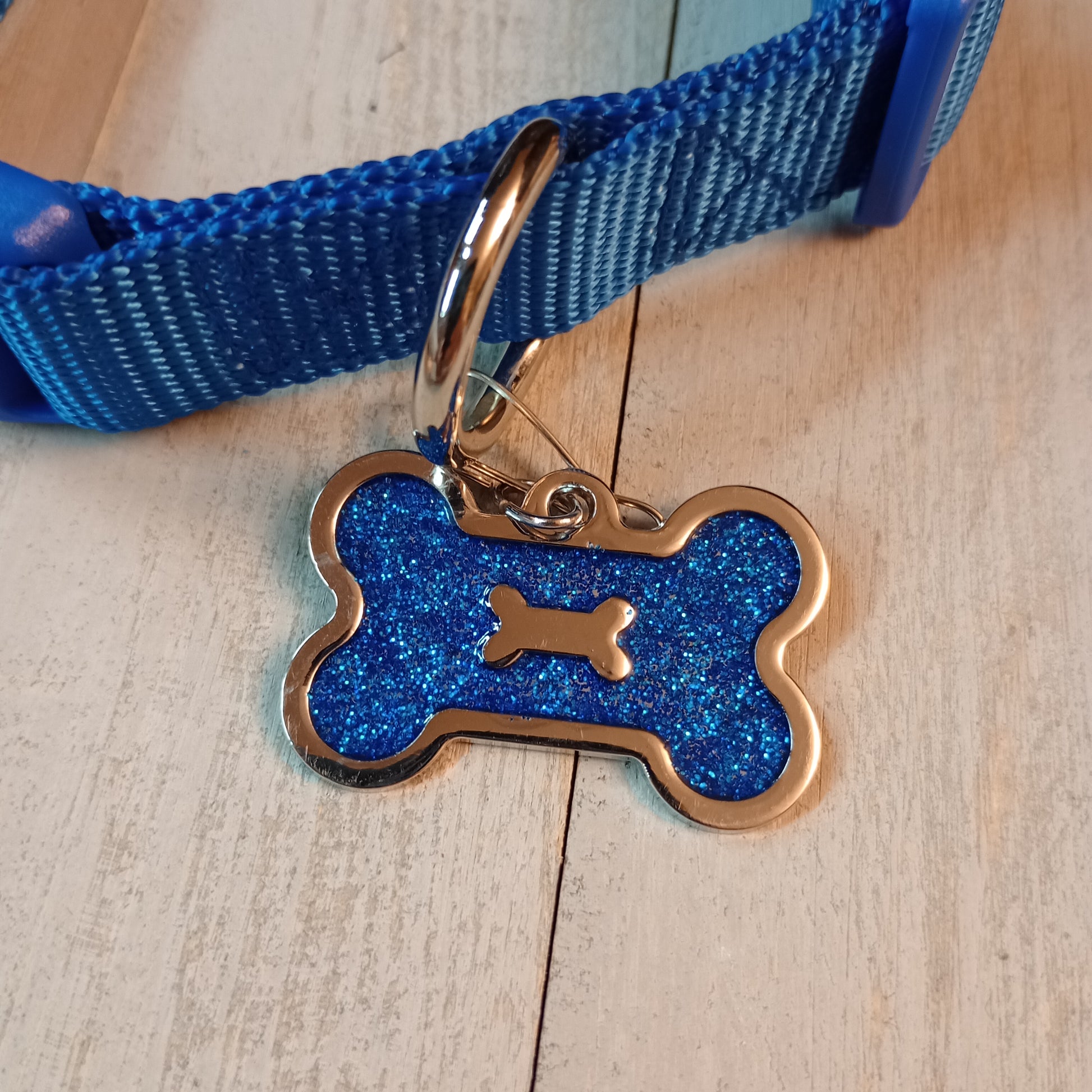 Blue Glitter Bone Shaped Pet Tag