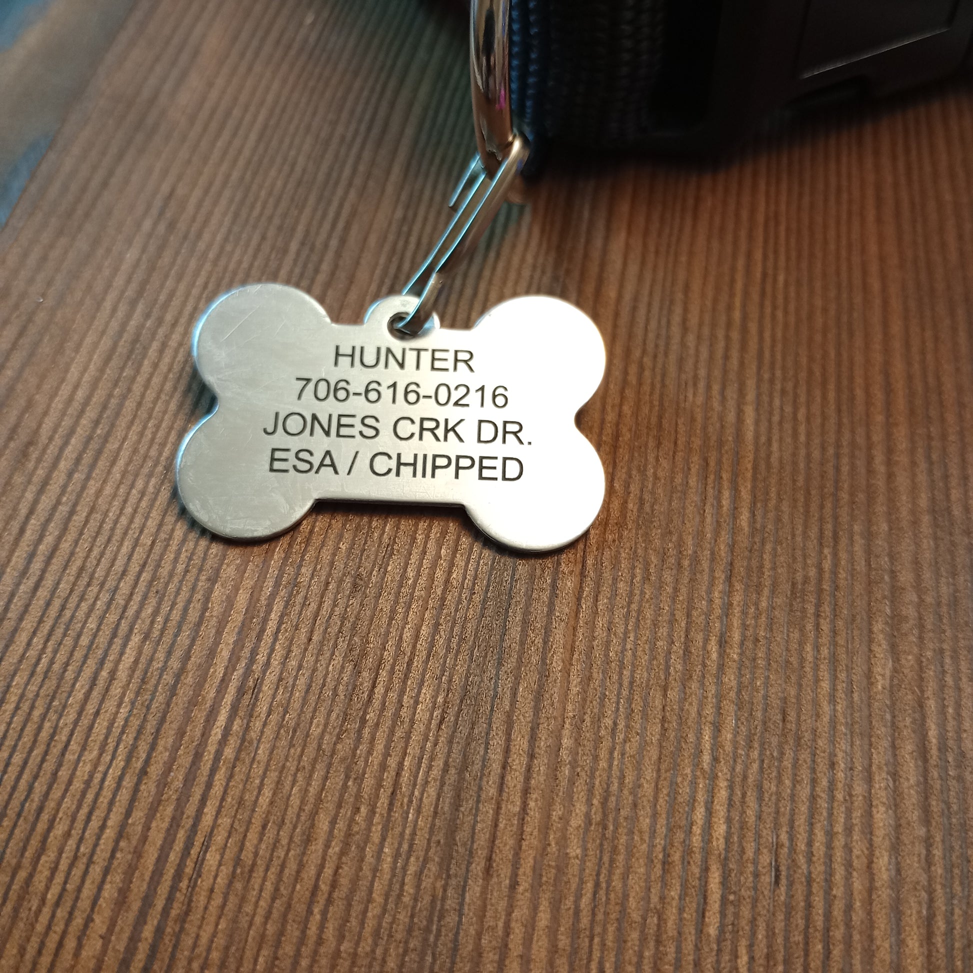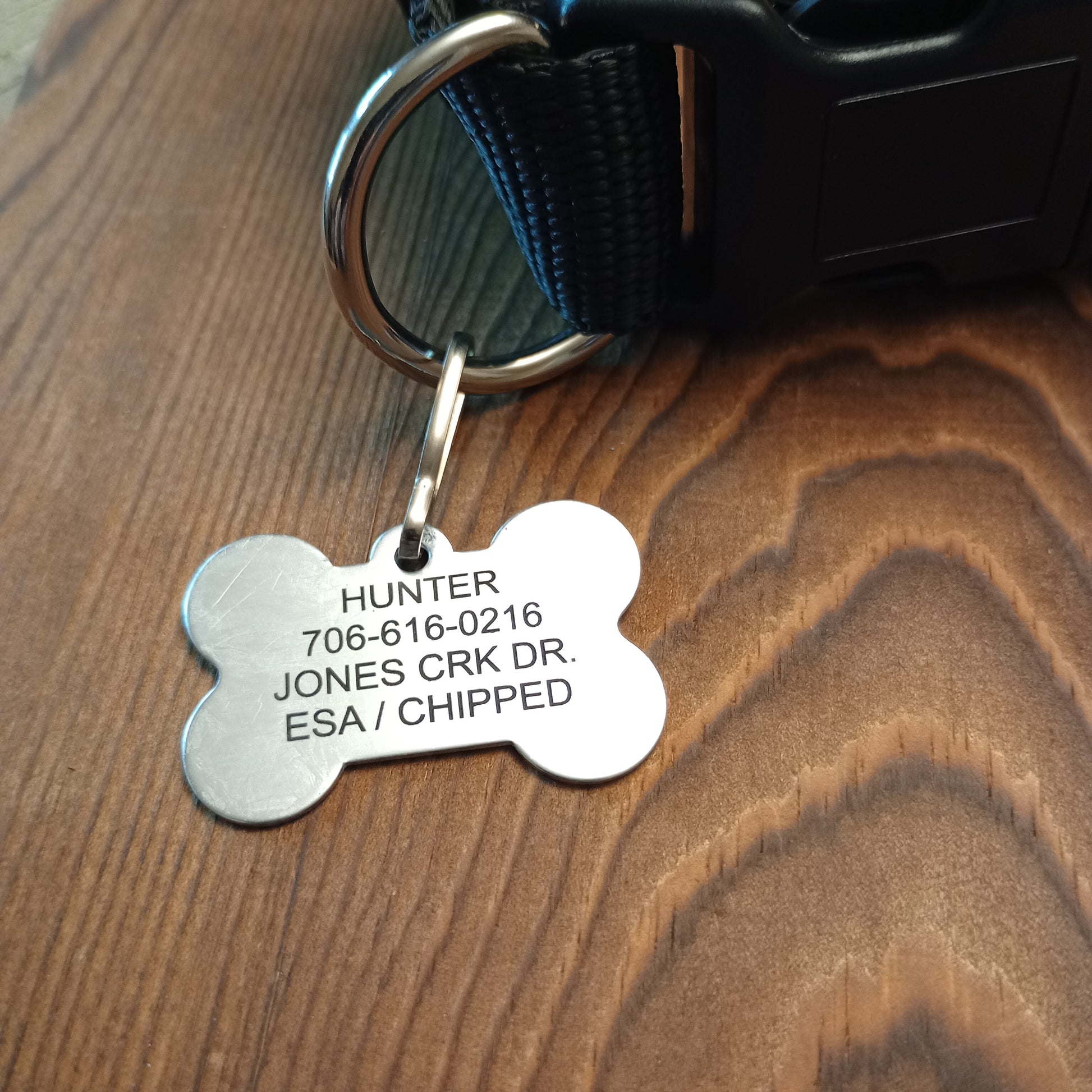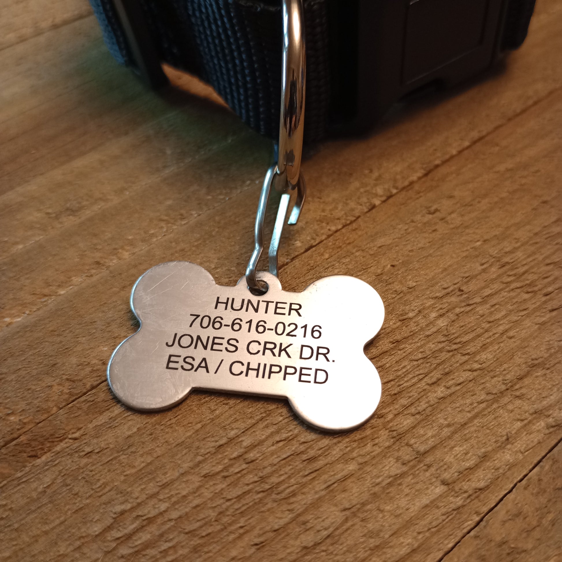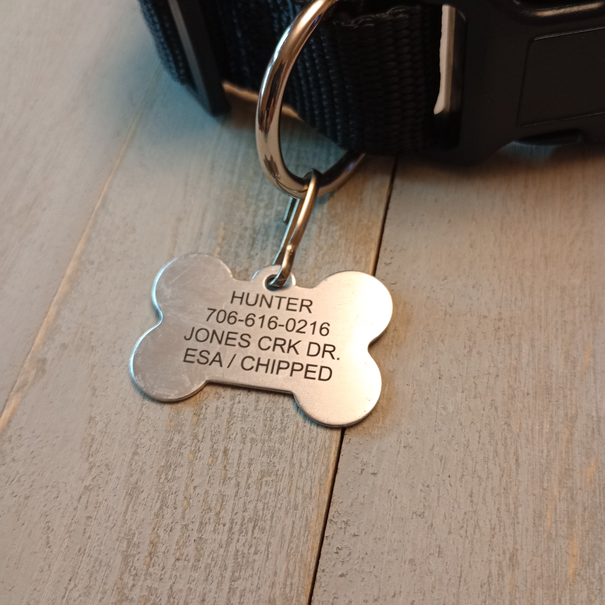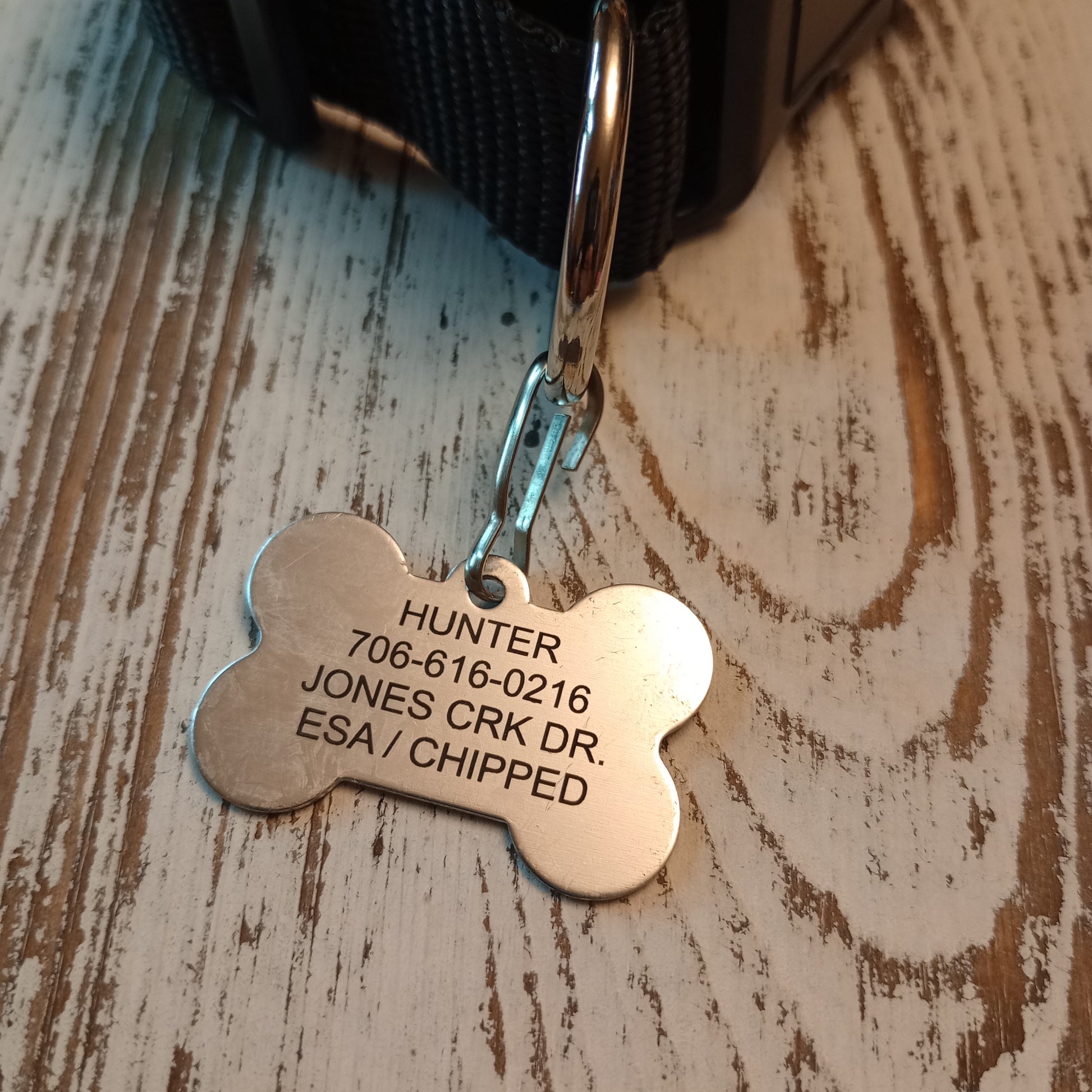 Maximum text limits: If you have more text that you would like to fit on the tag than the online store allows for the customization, reach out to us using the contact page at the top of the site. The limits are typically set so that the text can look good based on the engravable area for the pet tag. In most cases, we can add a lot more text, but the size of the text will have to decrease due to the engravable space.