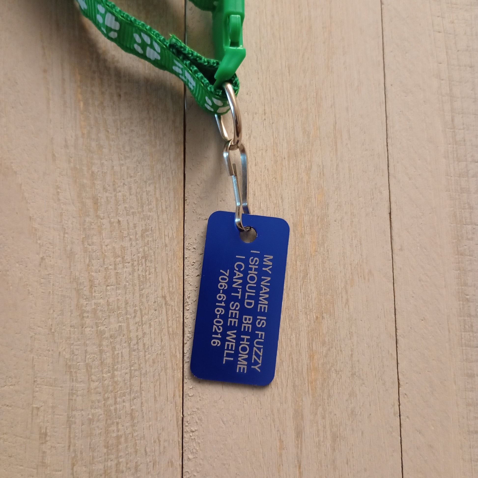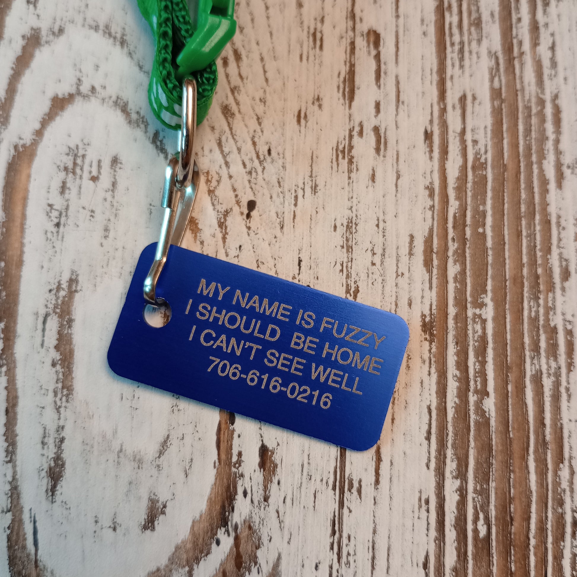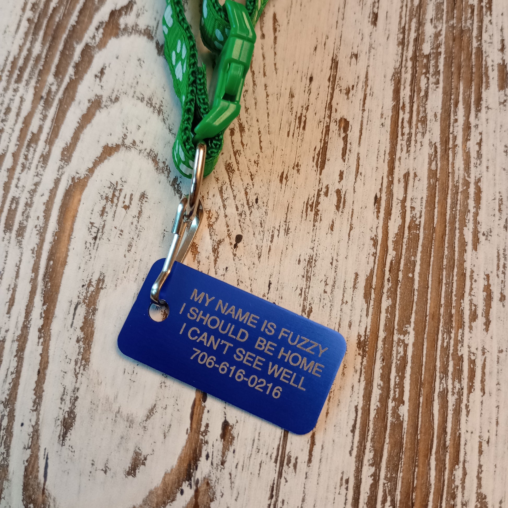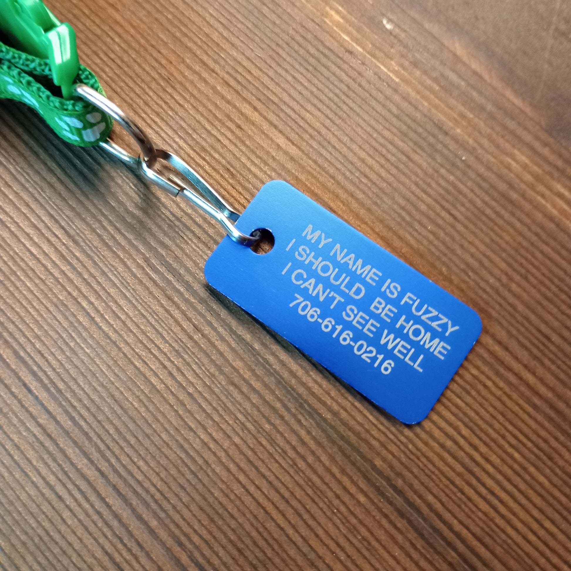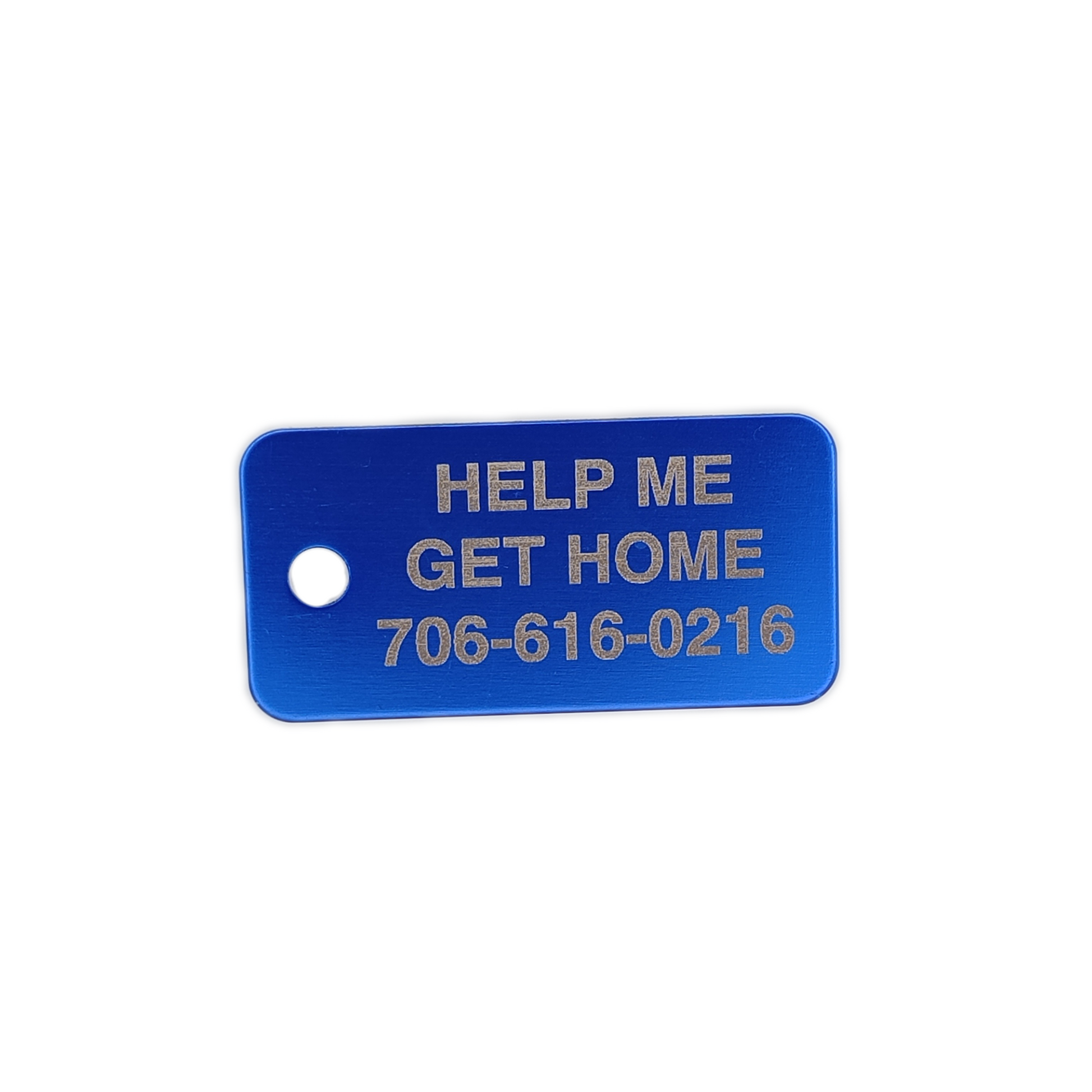 This Dark Blue Rectangular Pet Tag is anodized aluminum that allows for 4 lines of text to be engraved lengthwise on the front and 4 lines of text to be engraved lengthwise on the back.