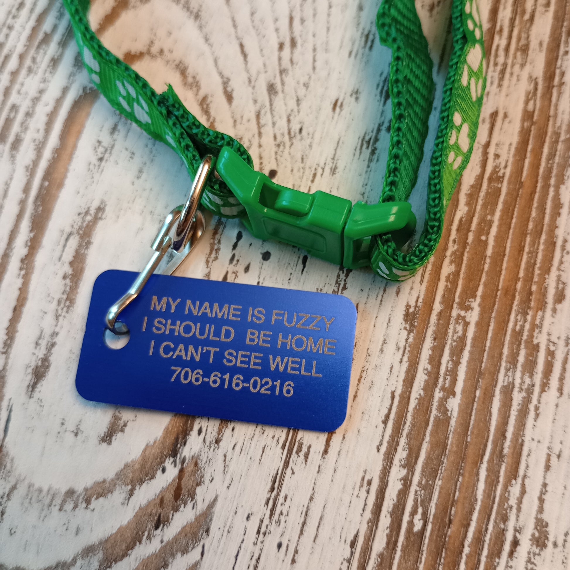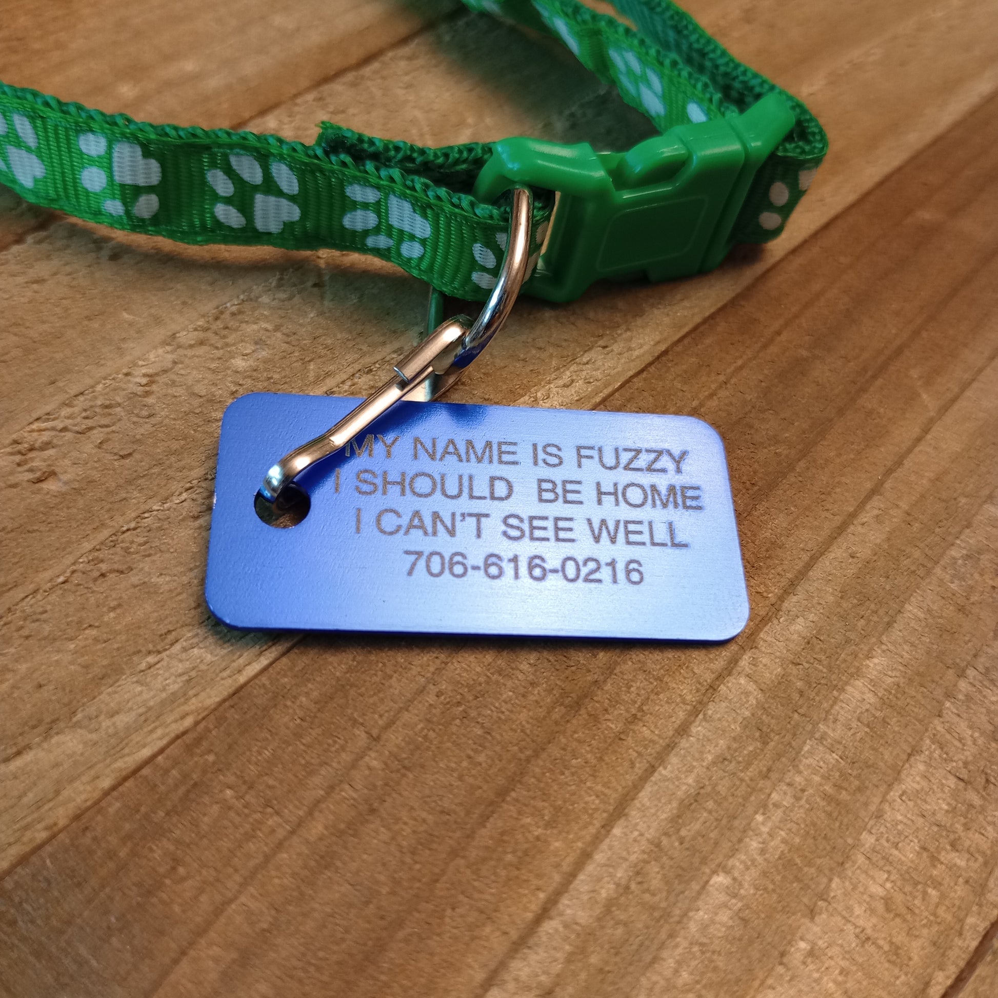Maximum text limits: If you have more text that you would like to fit on the tag than the online store allows for the customization, reach out to us using the contact page at the top of the site. The limits are typically set so that the text can look good based on the engravable area for the pet tag. In most cases, we can add a lot more text, but the size of the text will have to decrease due to the engravable space.