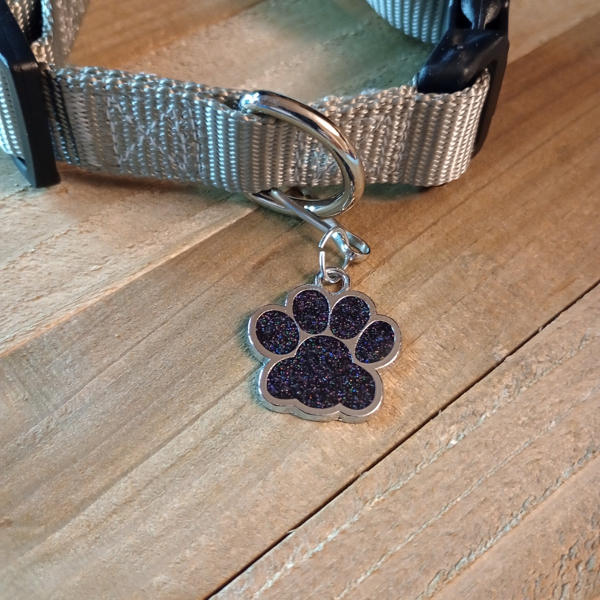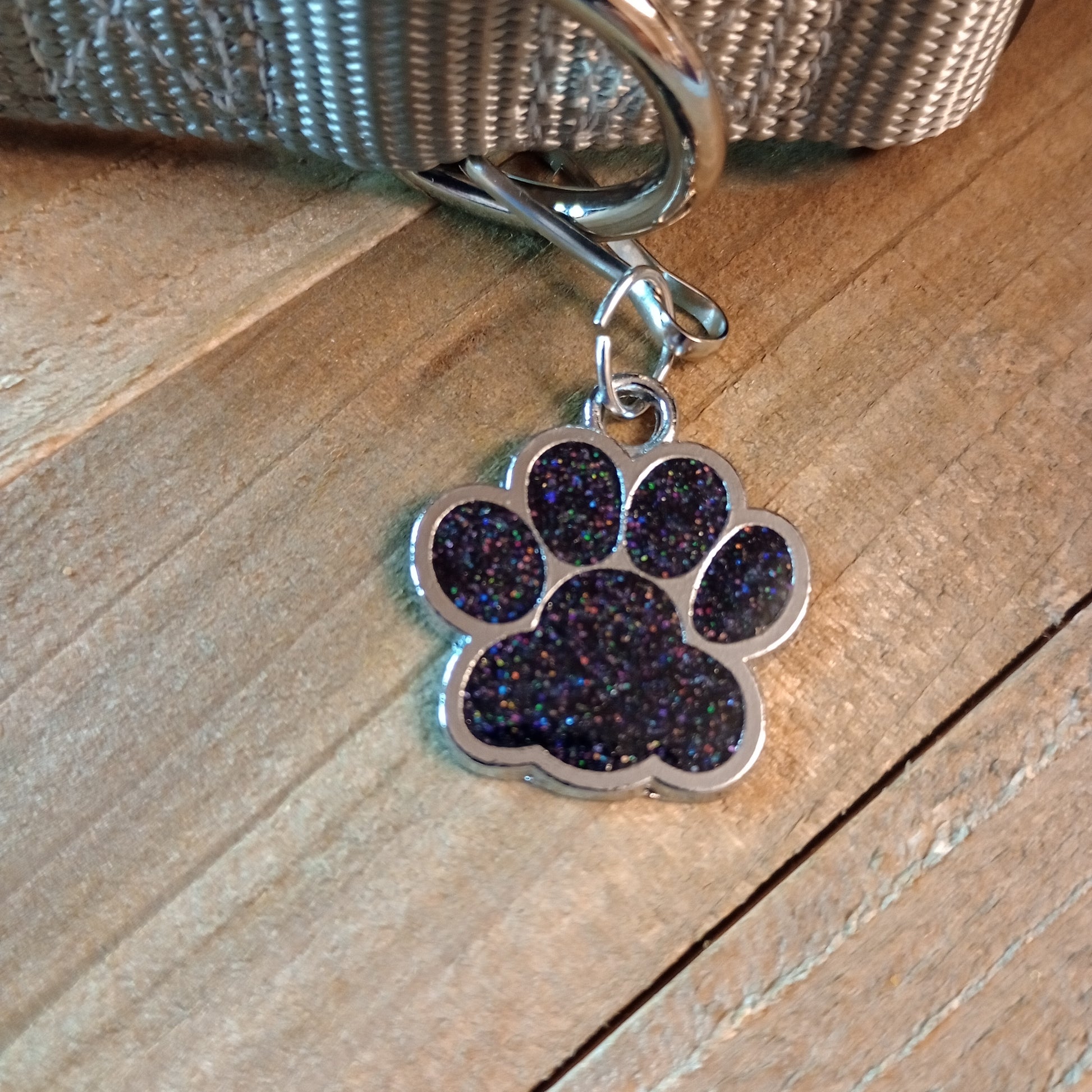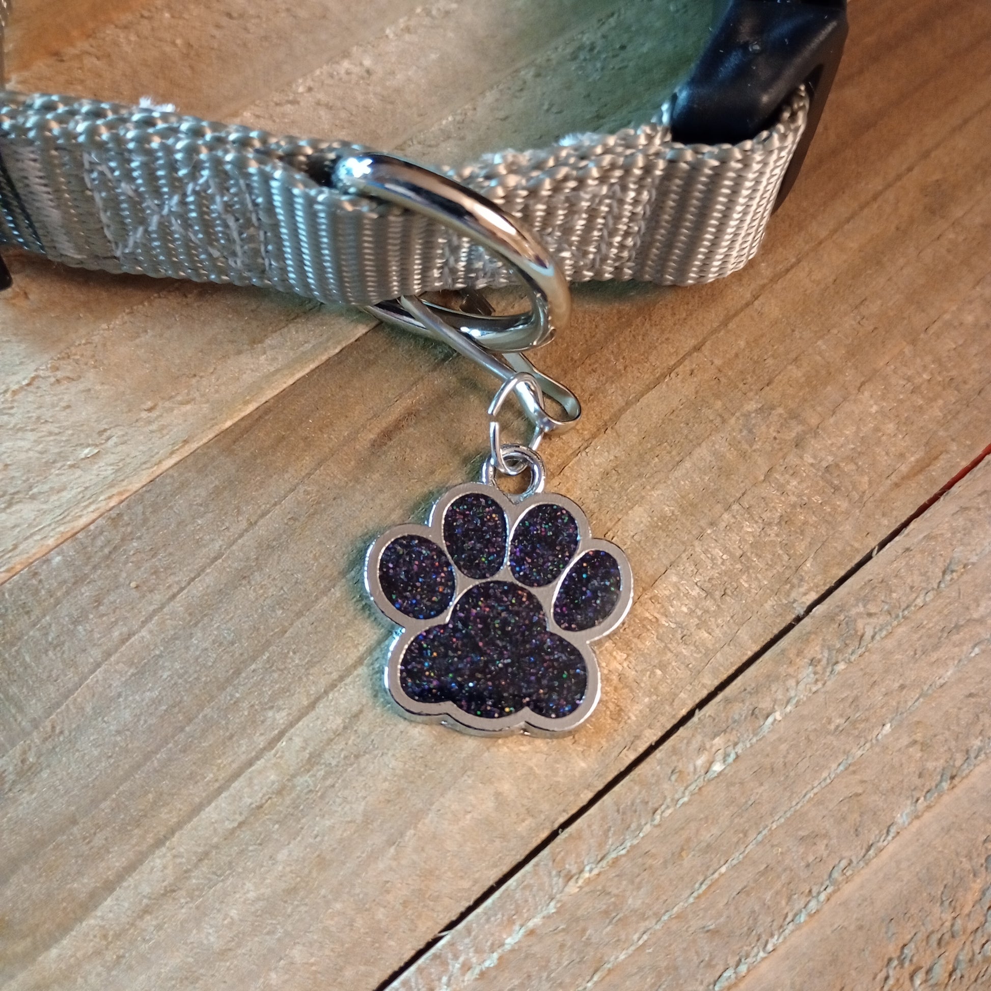 Dark Gray Glitter Paw Pet Tag (1 inch)