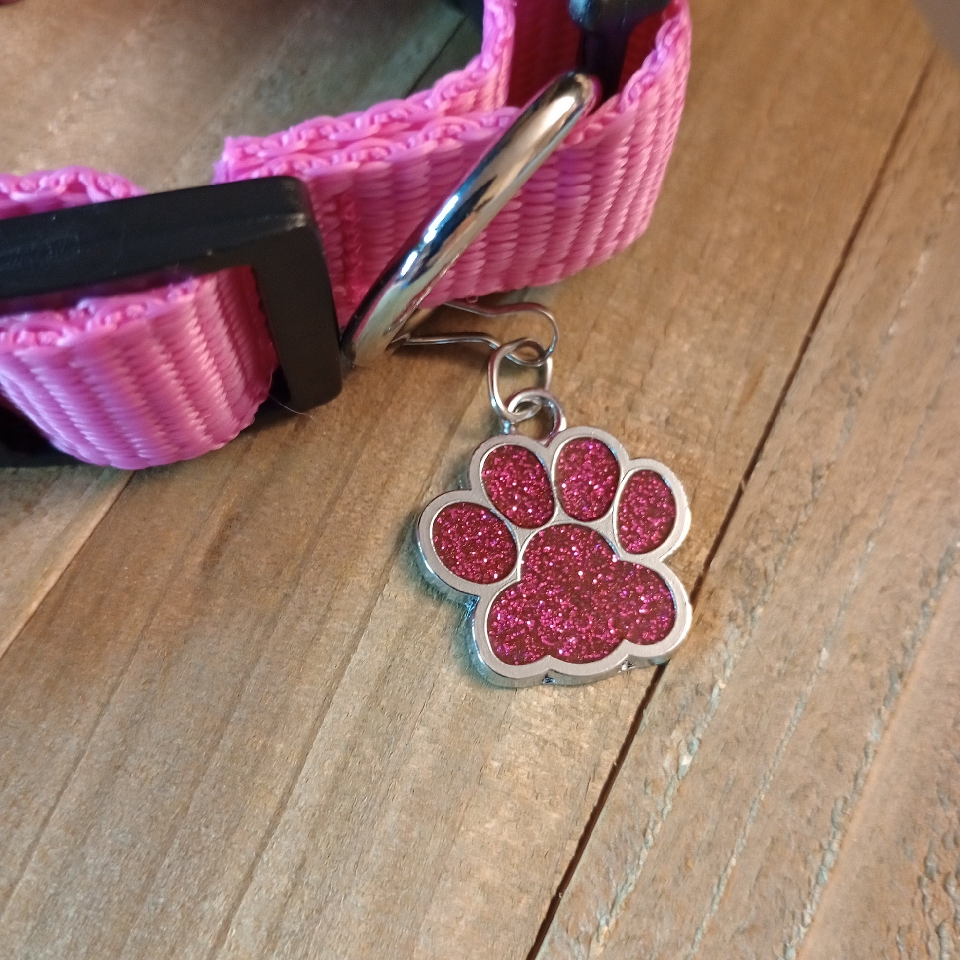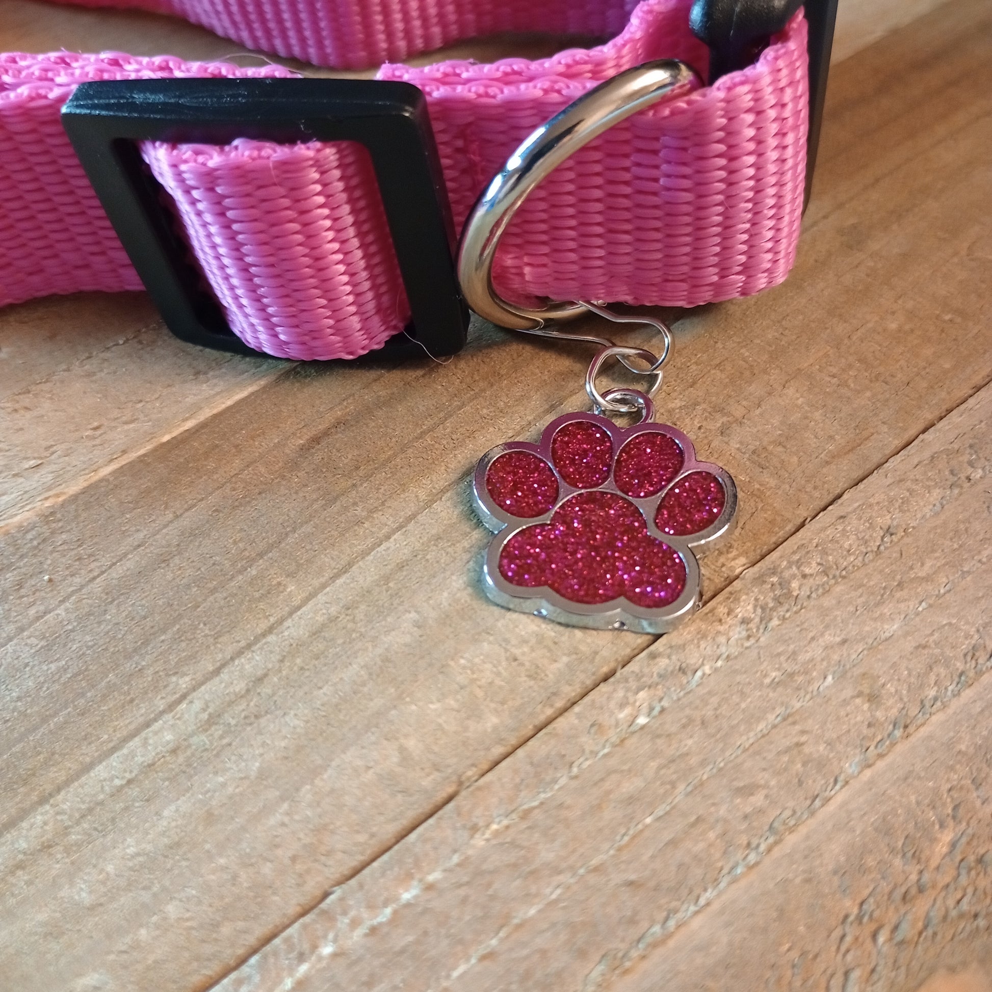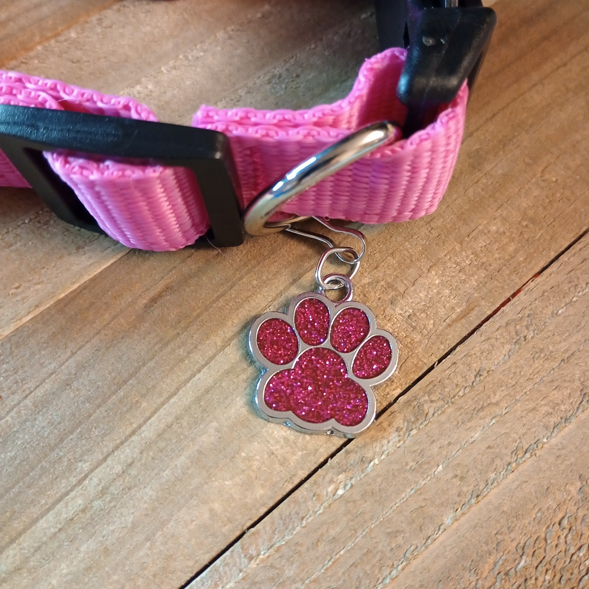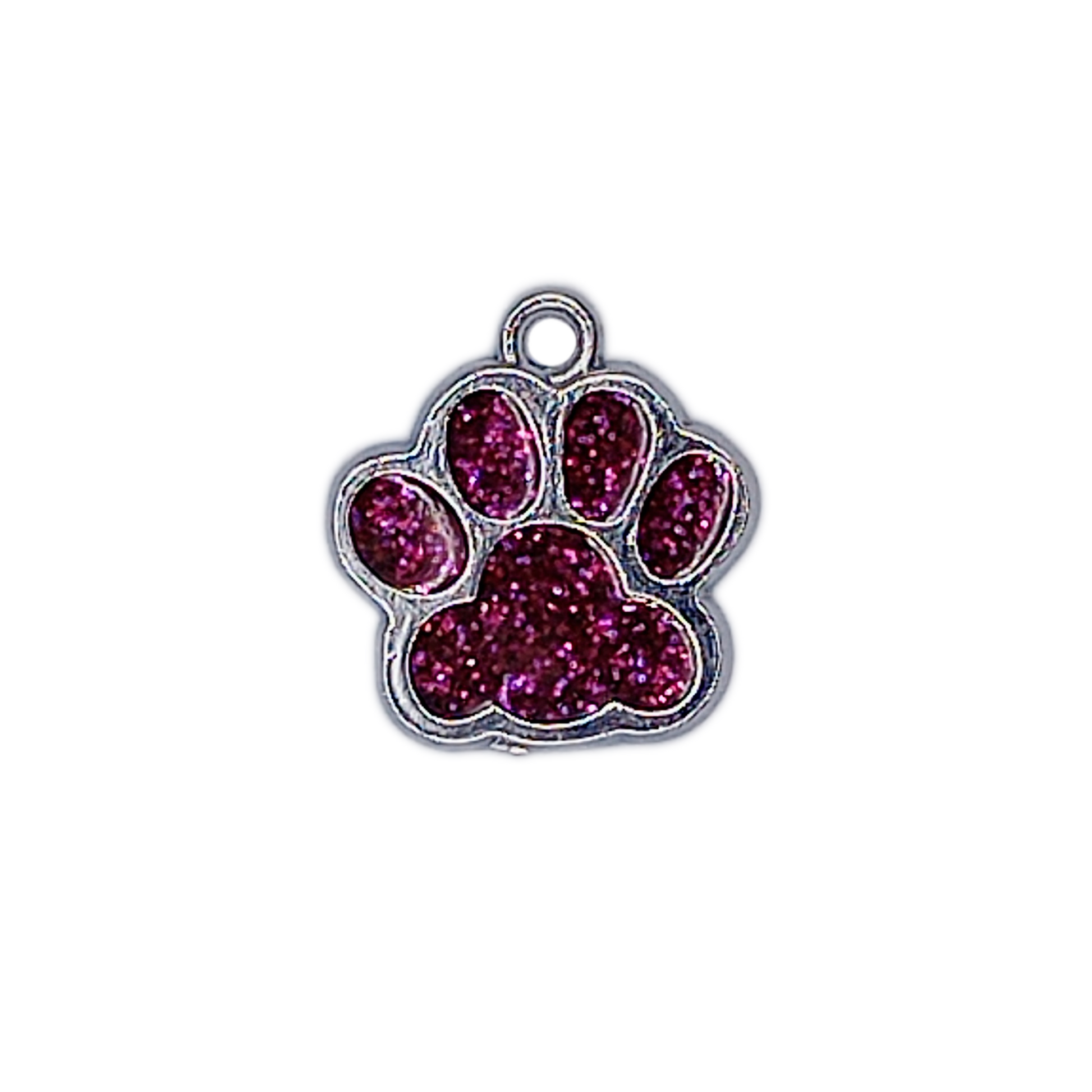 Dark Pink Glitter Paw Pet Tag (1 inch)