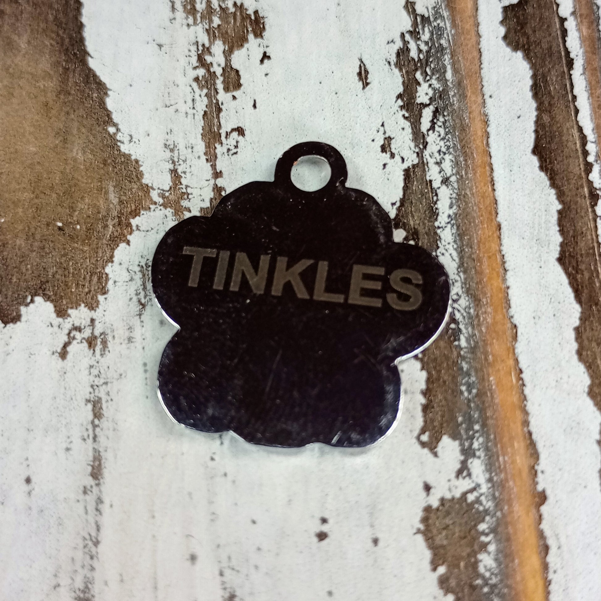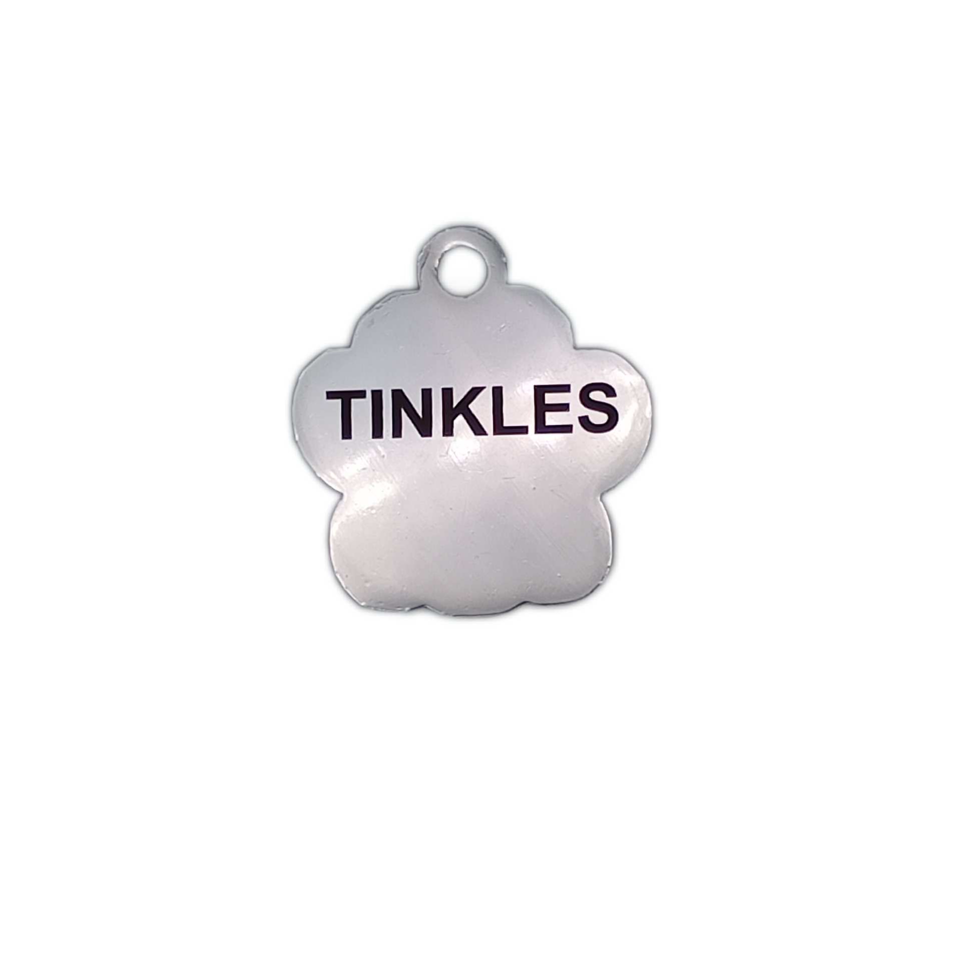 Making the name larger font size: If the tag allows for four lines and you use only three we will use the space from that extra line to make the name of the pet larger than the other lines of text.