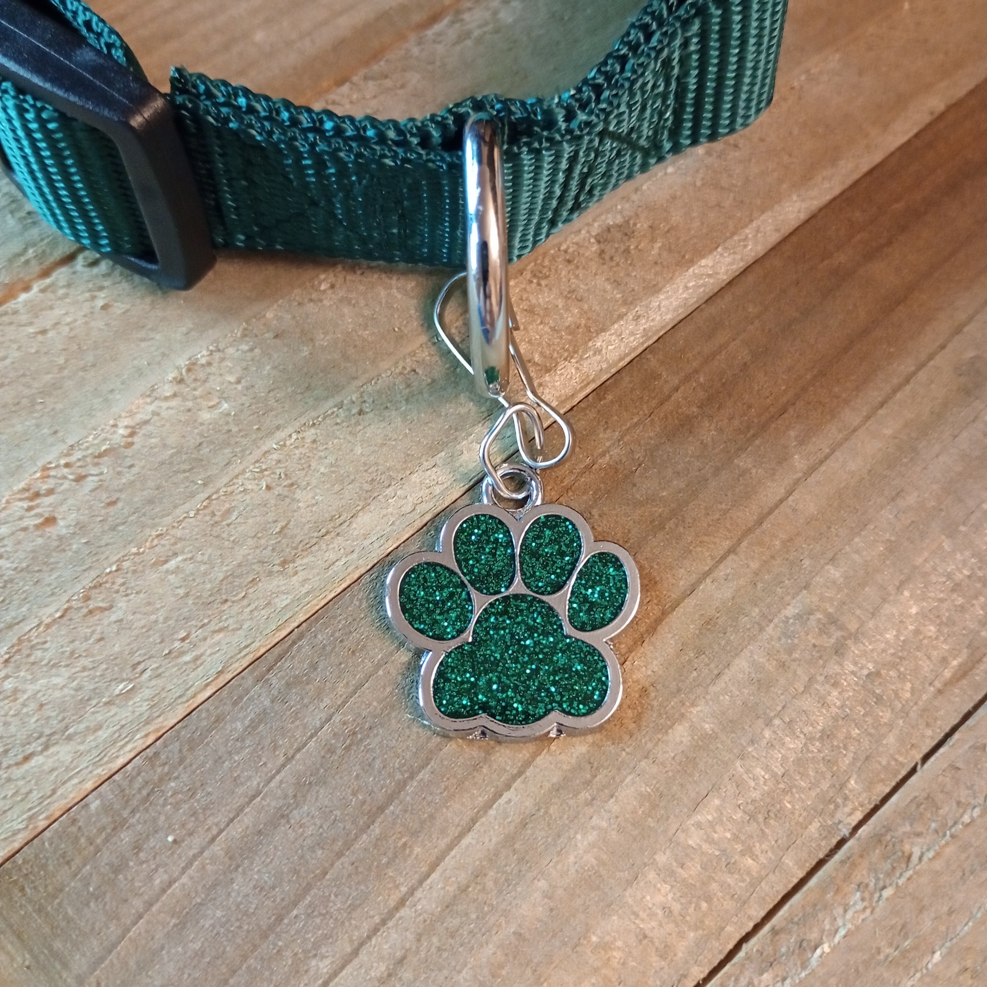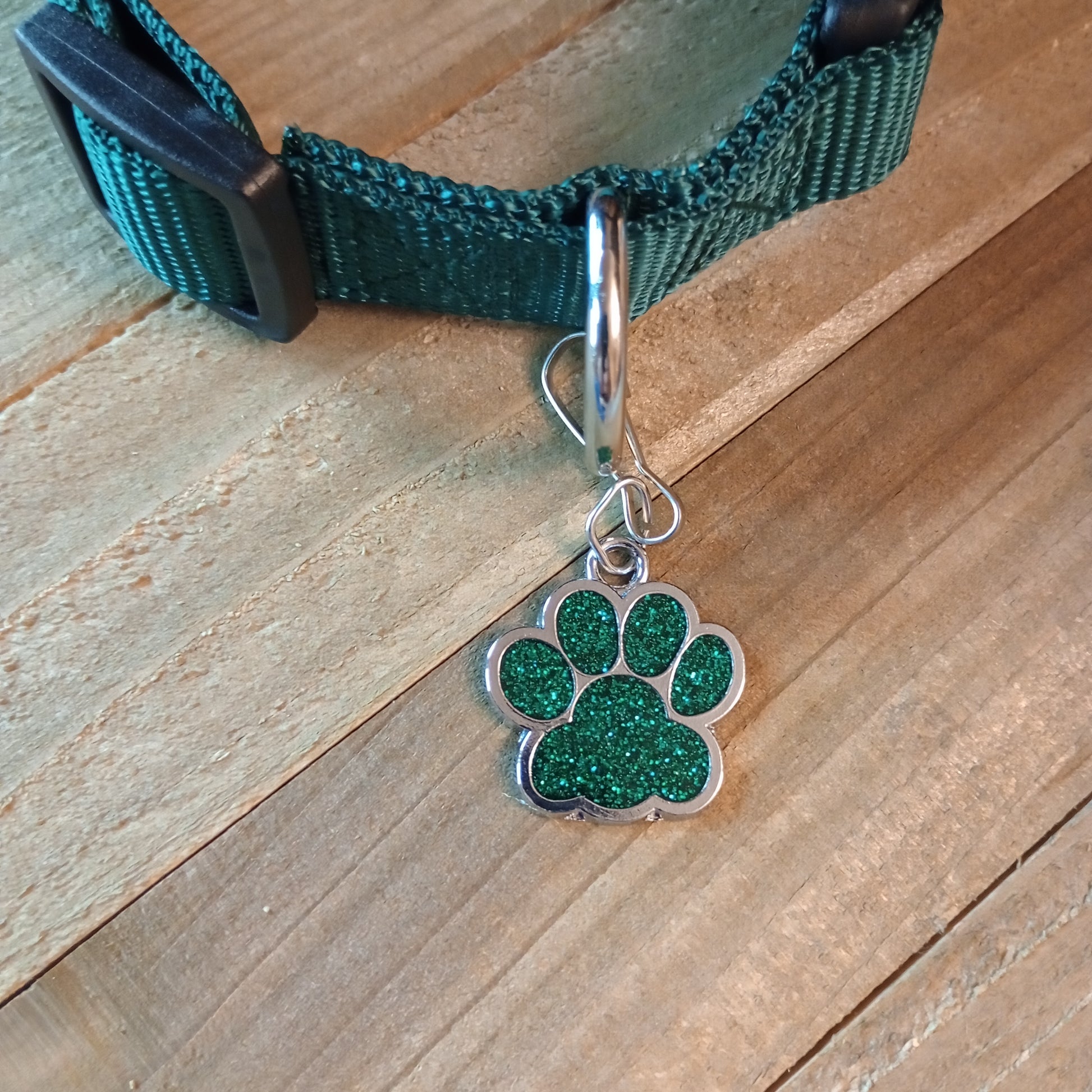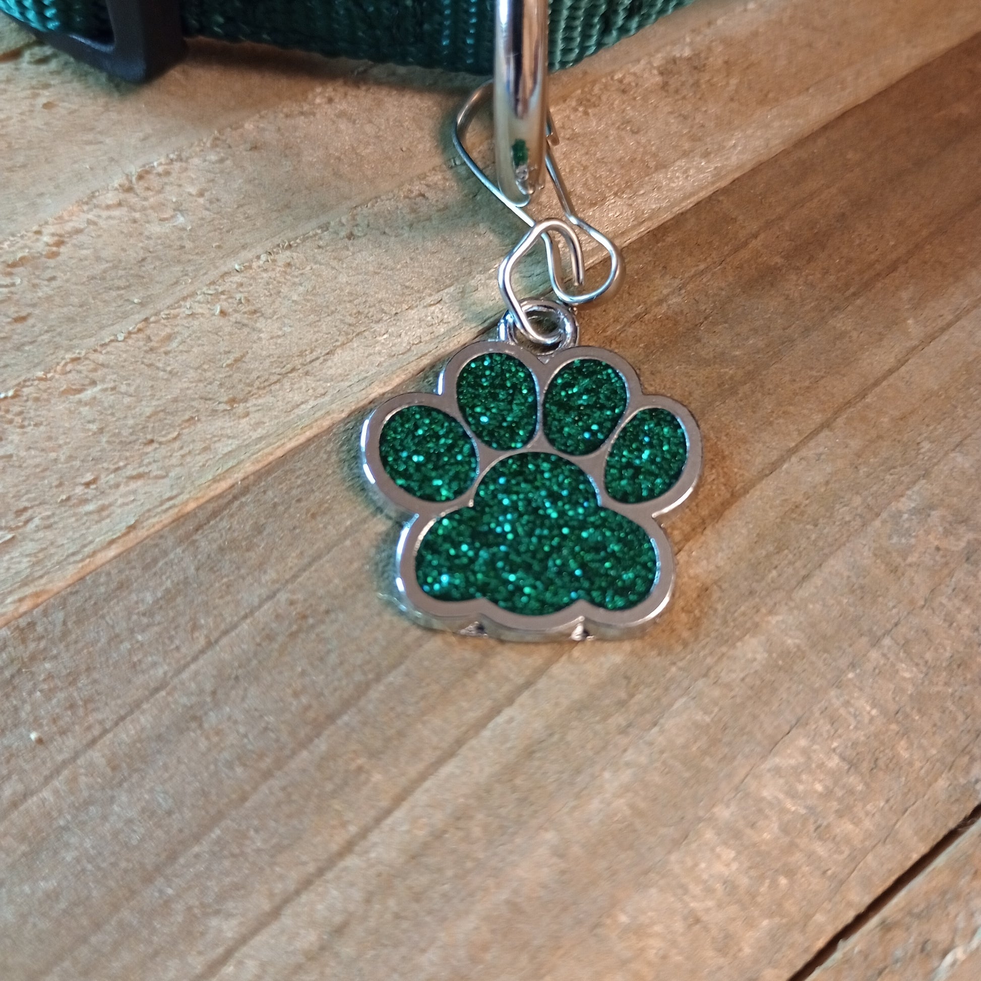 Emerald Green Glitter Paw Pet Tag (1 inch)