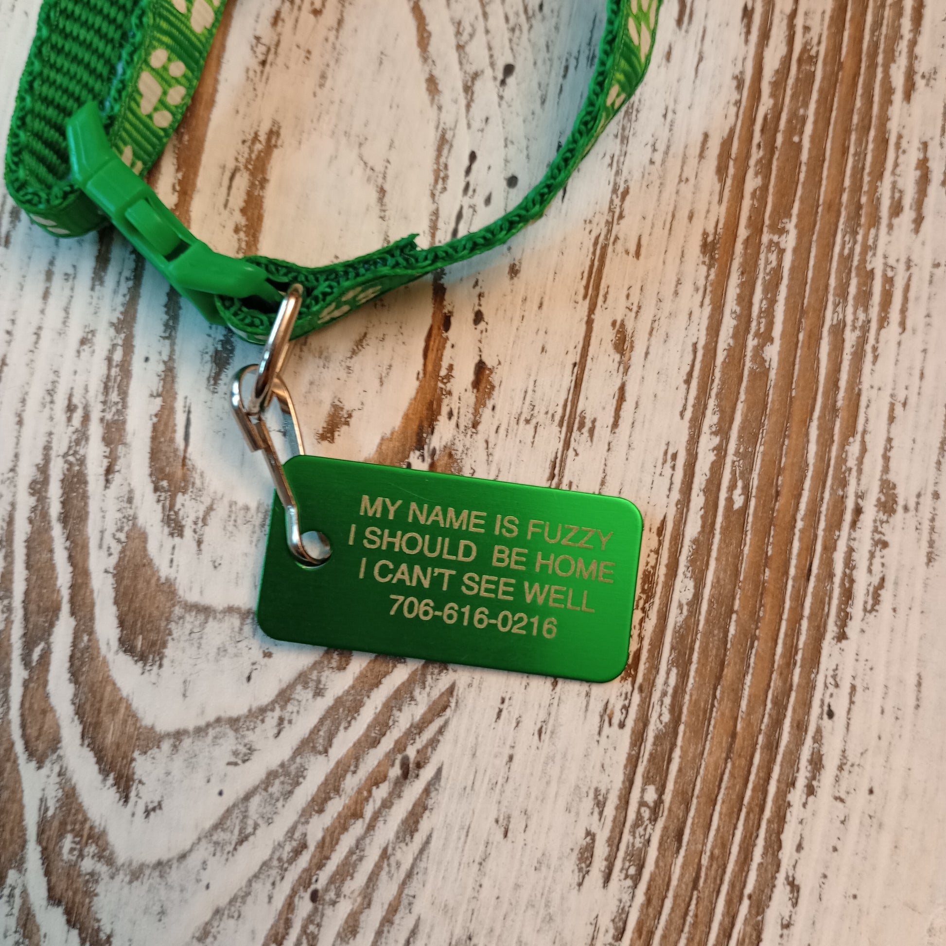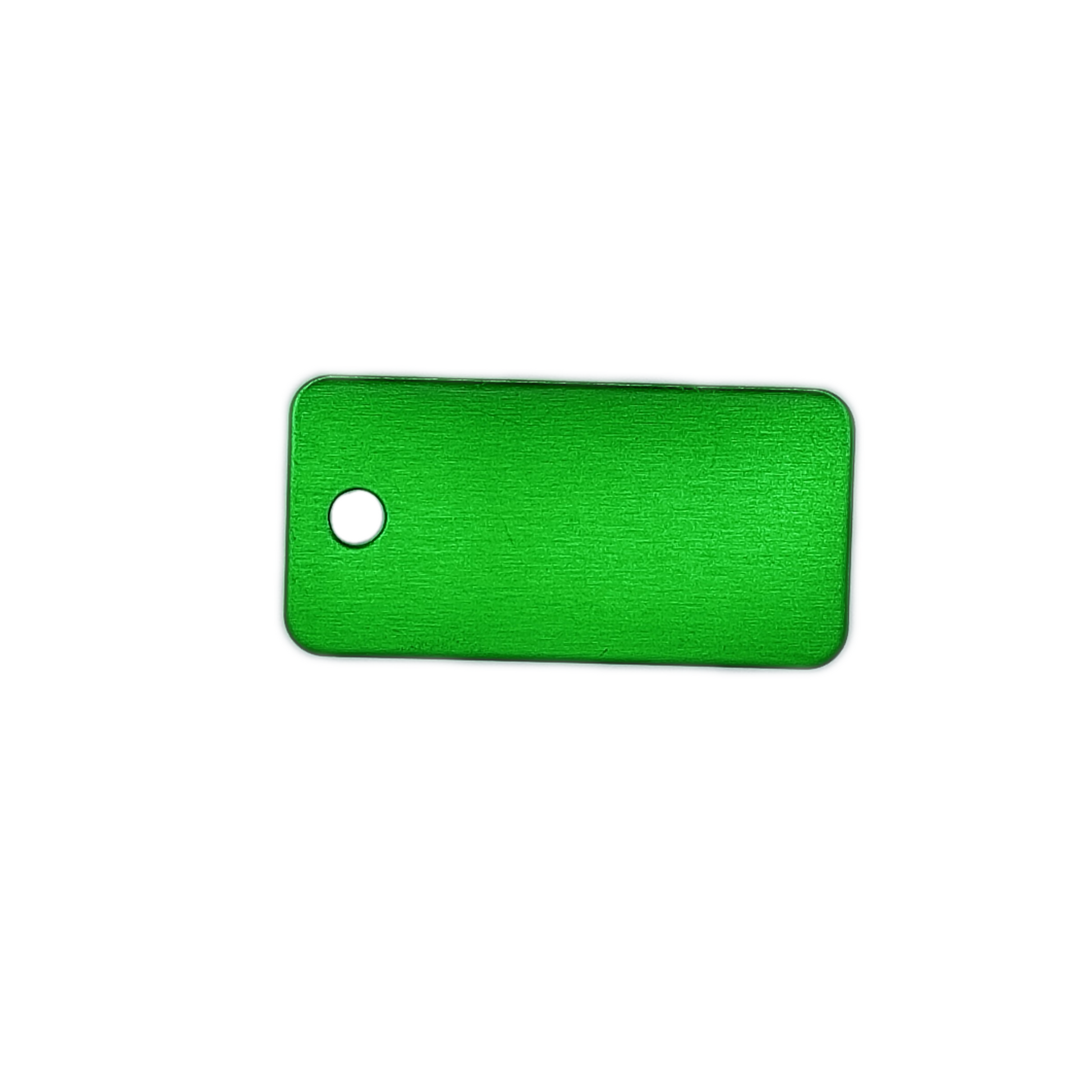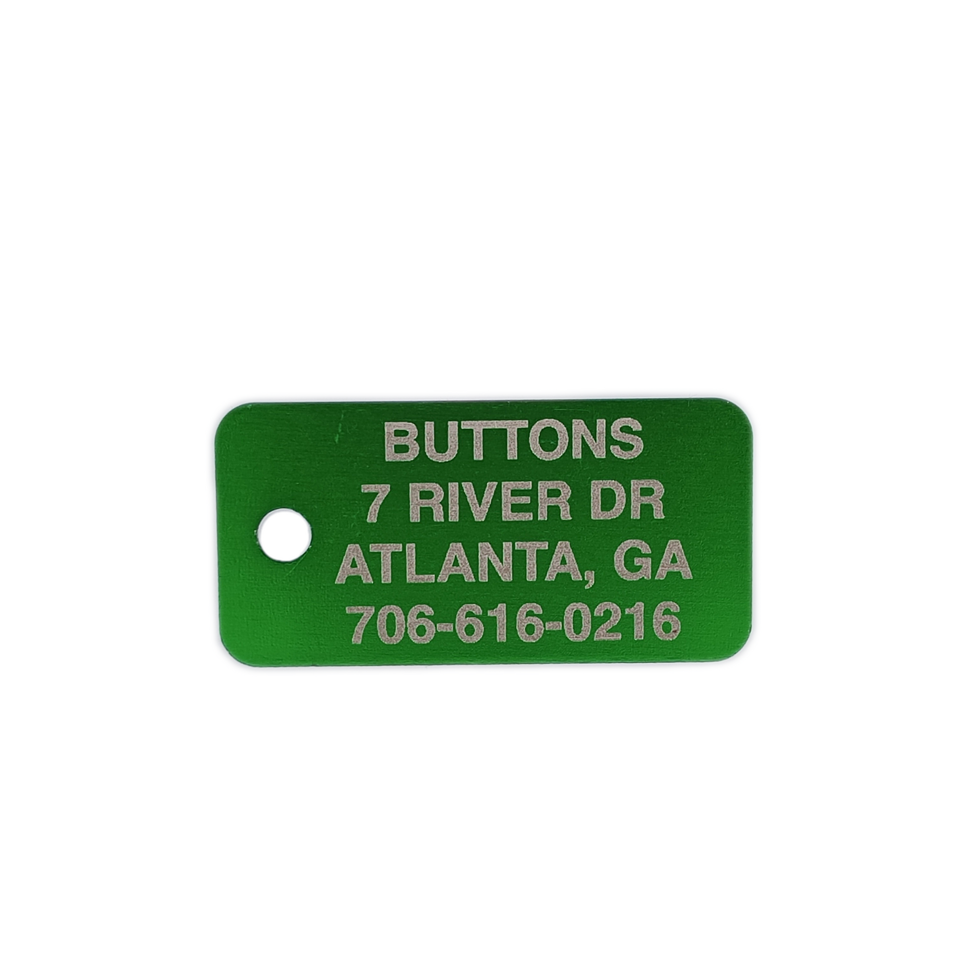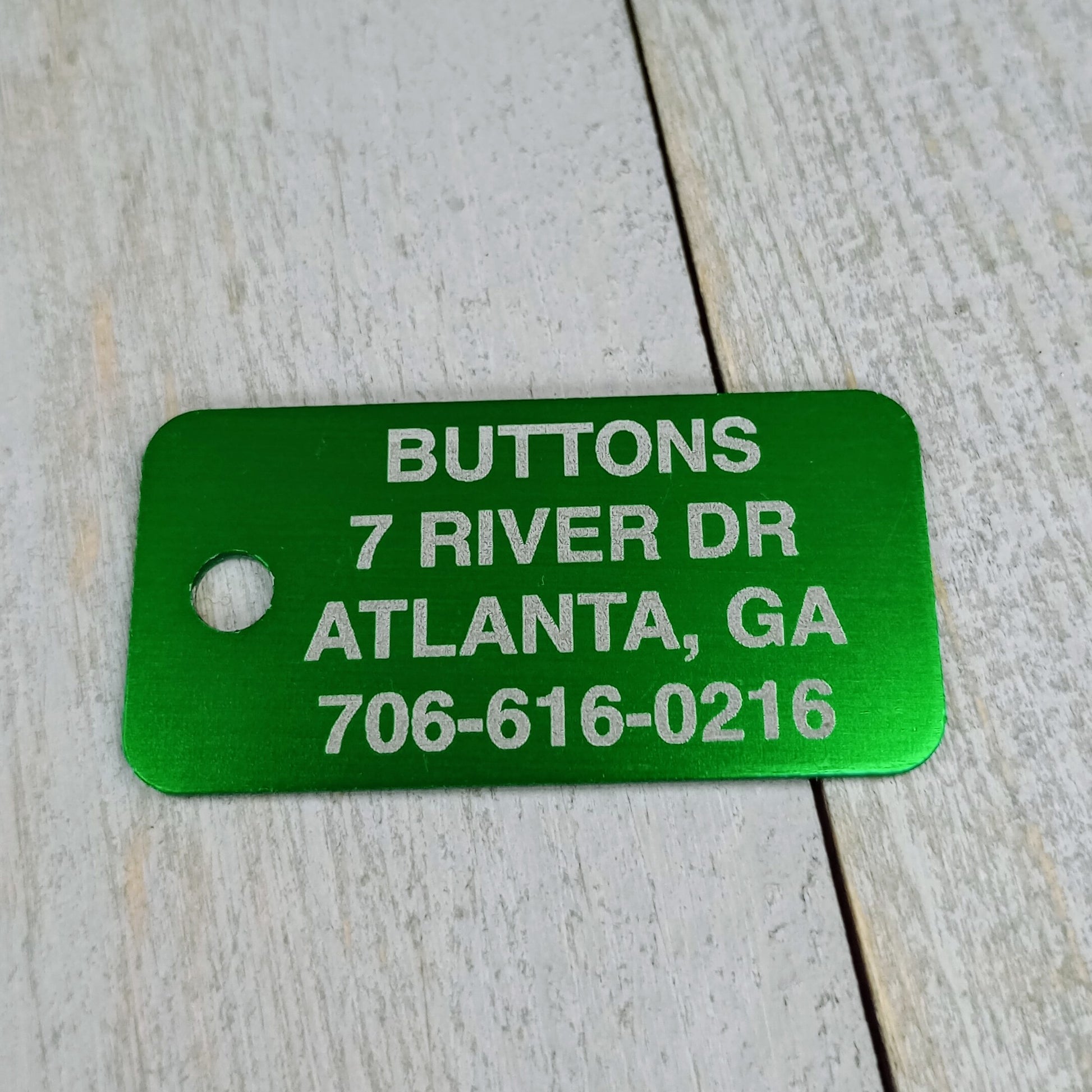This Green Rectangular Pet Tag is anodized aluminum that allows for 4 lines of text to be engraved lengthwise on the front and 4 lines of text to be engraved lengthwise on the back.