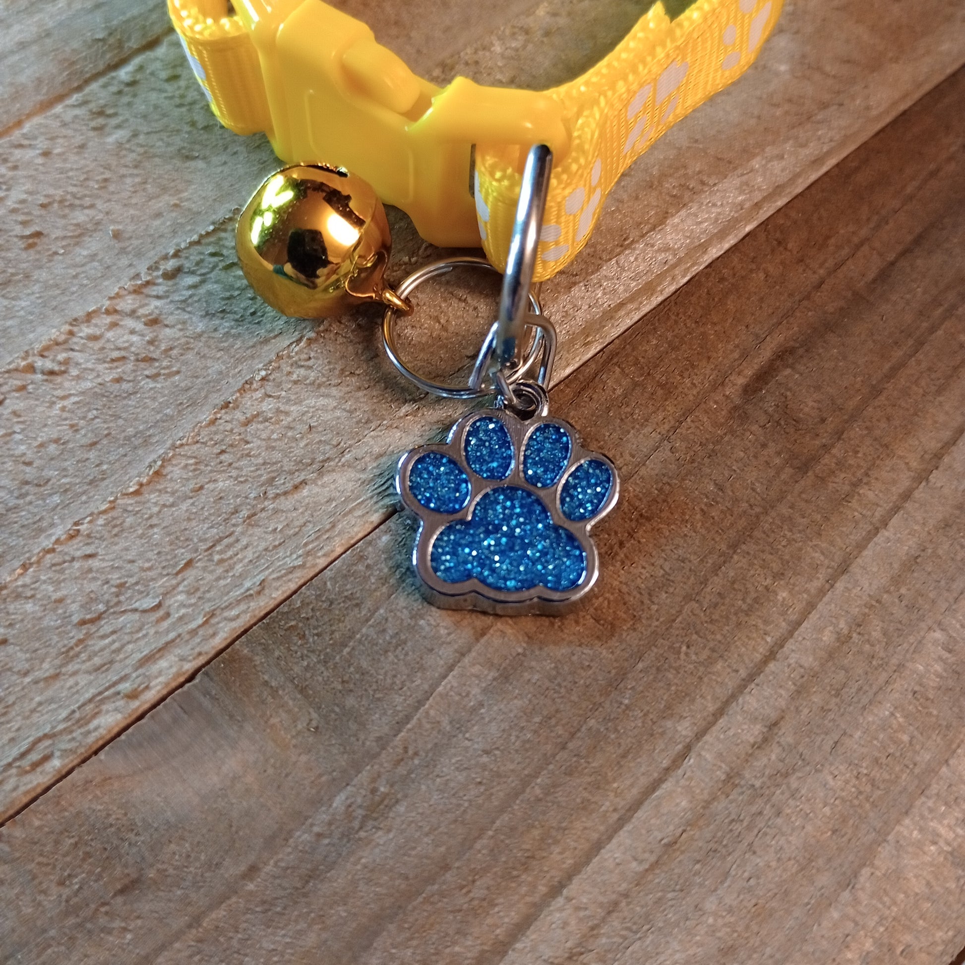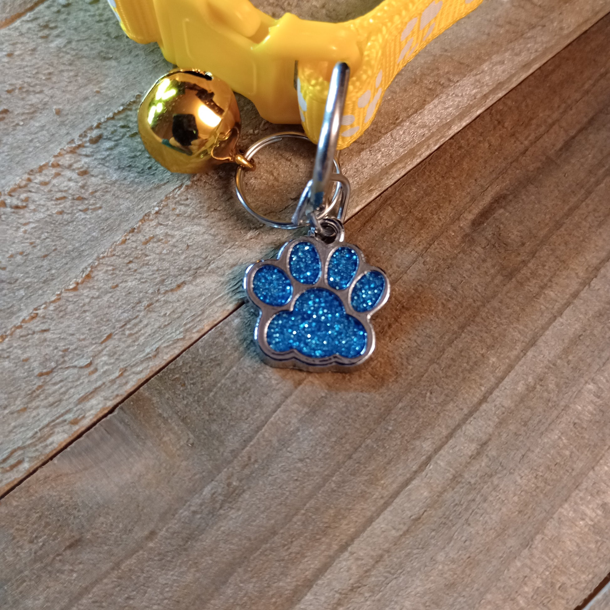 Light Blue Glitter Paw Pet Tag (.7 inch)