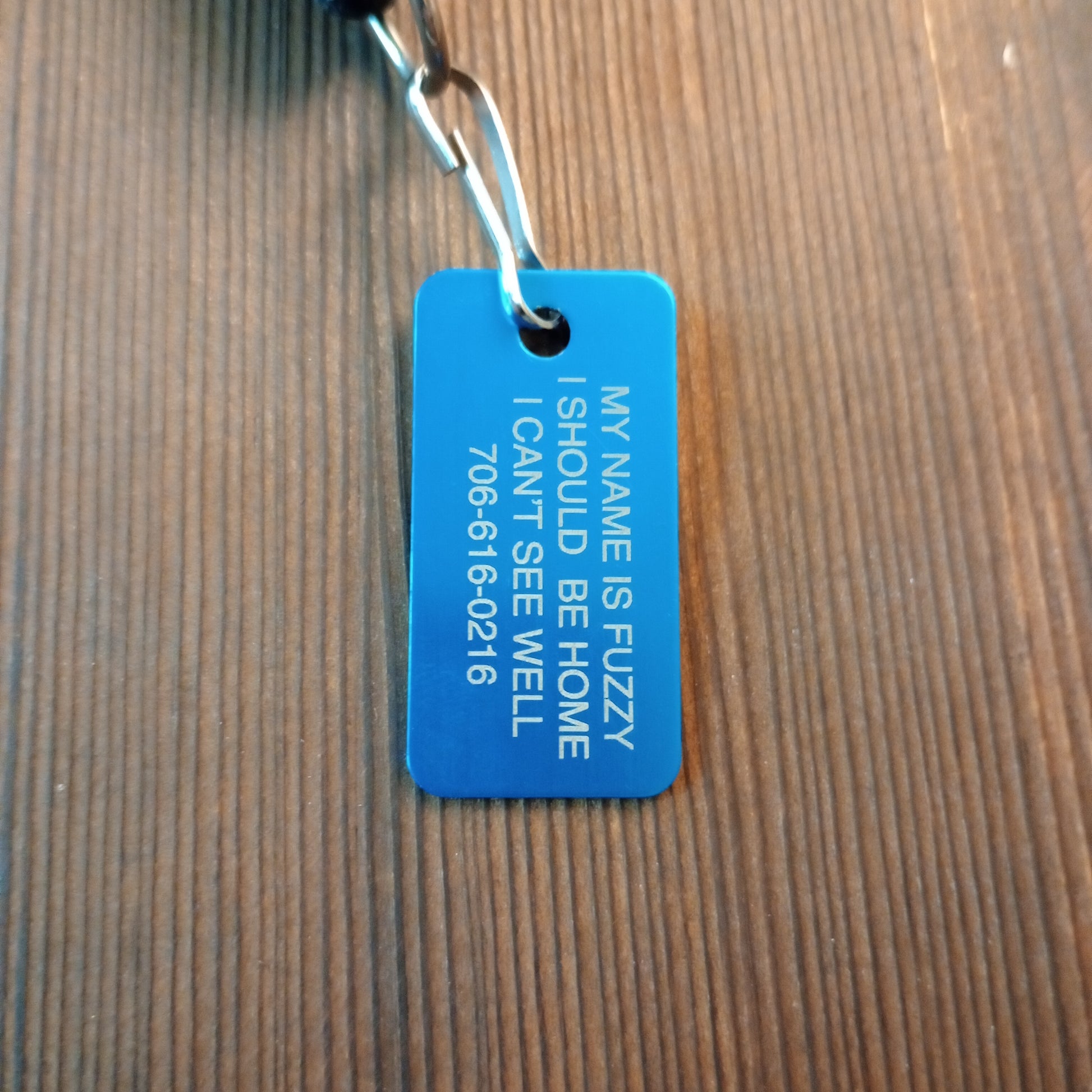 Maximum text limits: If you have more text that you would like to fit on the tag than the online store allows for the customization, reach out to us using the contact page at the top of the site. The limits are typically set so that the text can look good based on the engravable area for the pet tag. In most cases, we can add a lot more text, but the size of the text will have to decrease due to the engravable space.