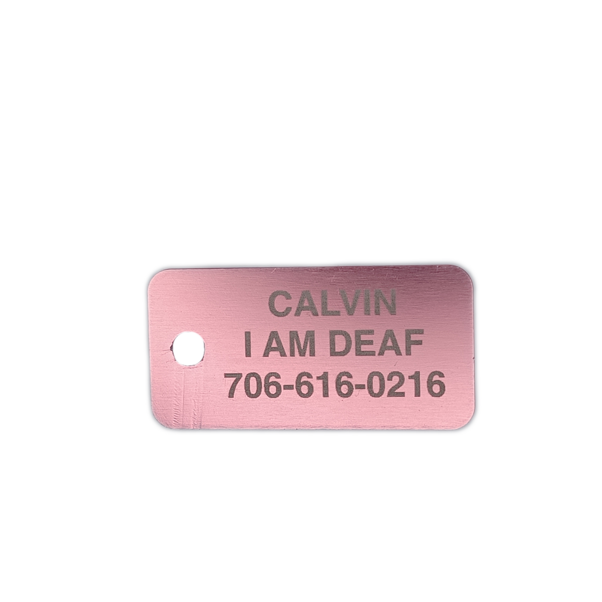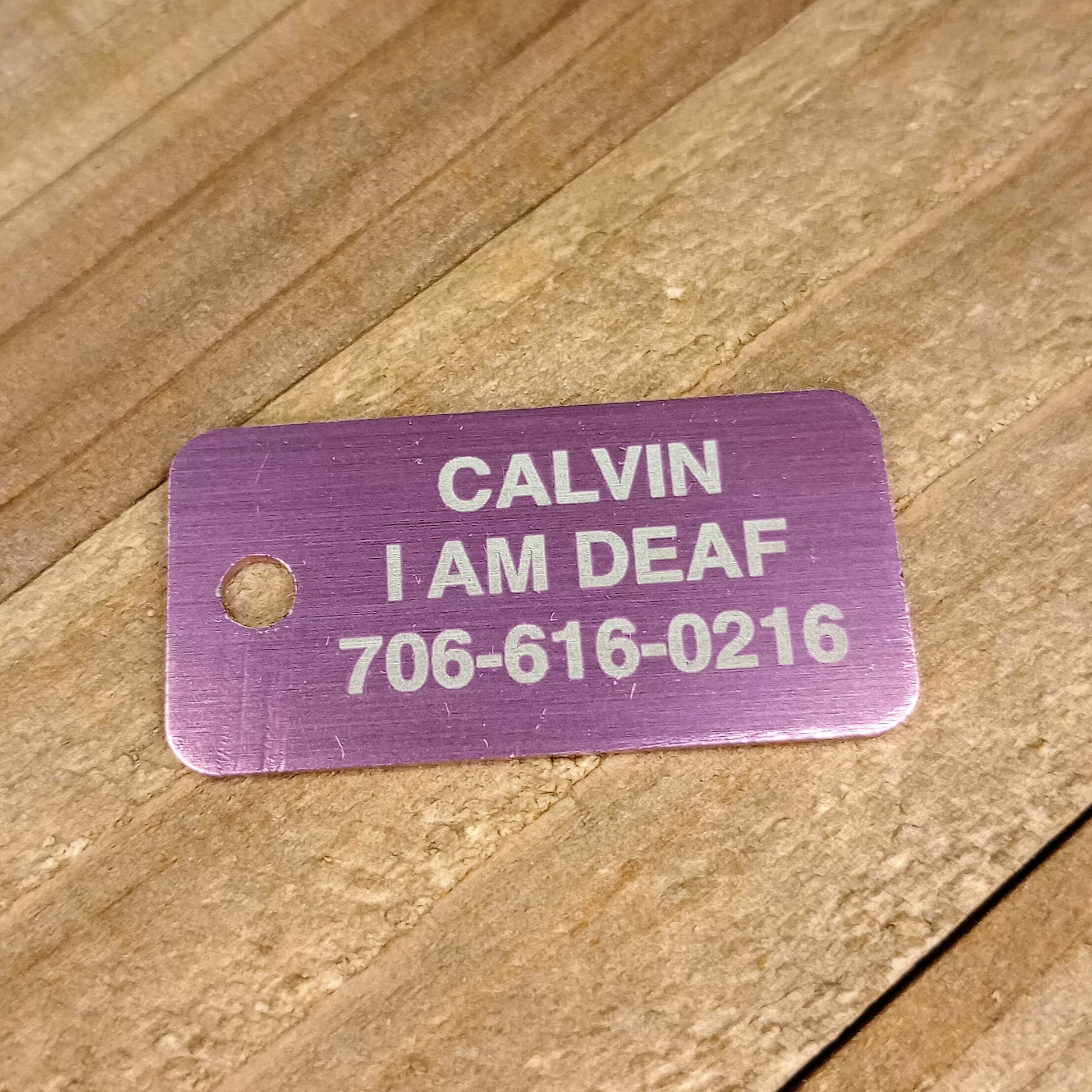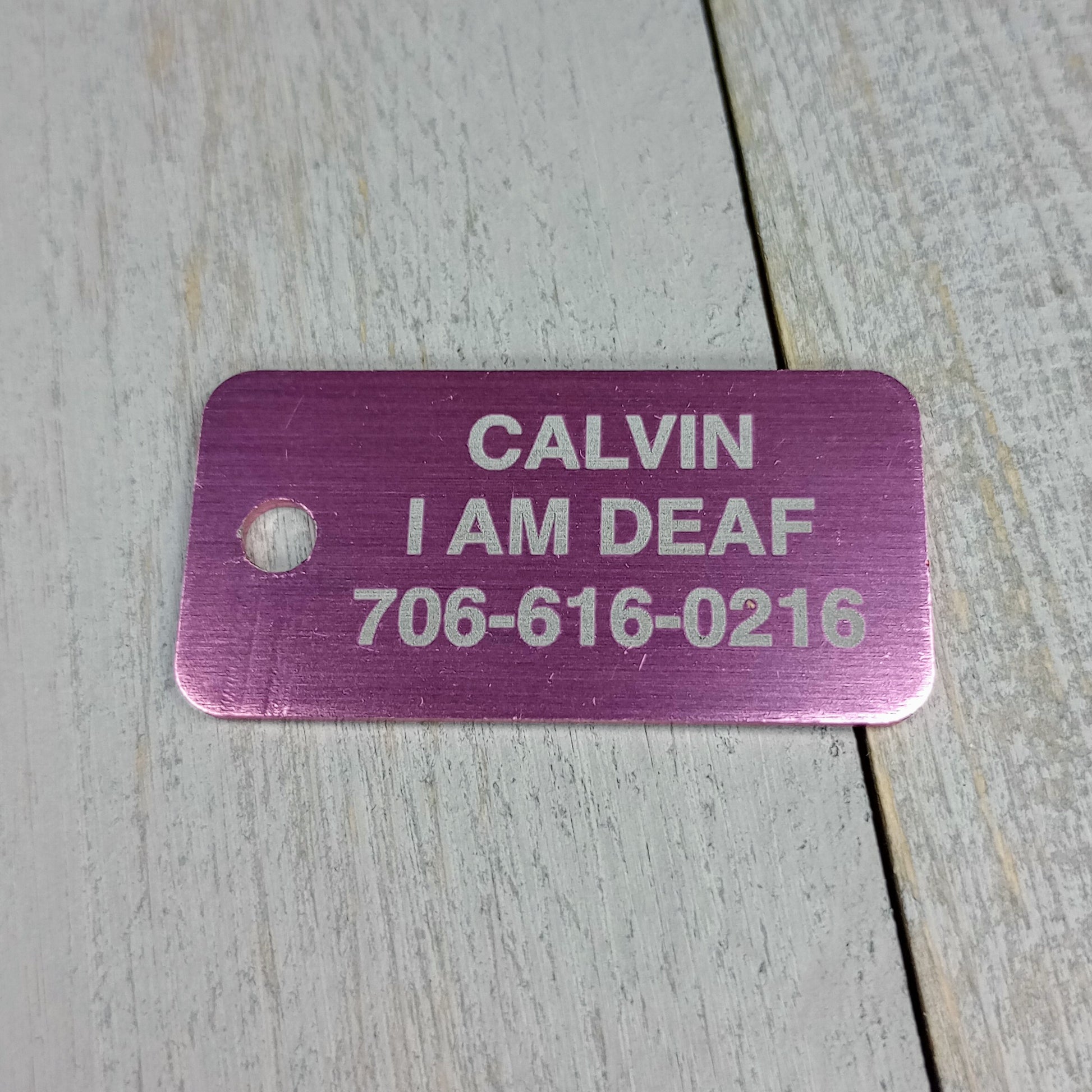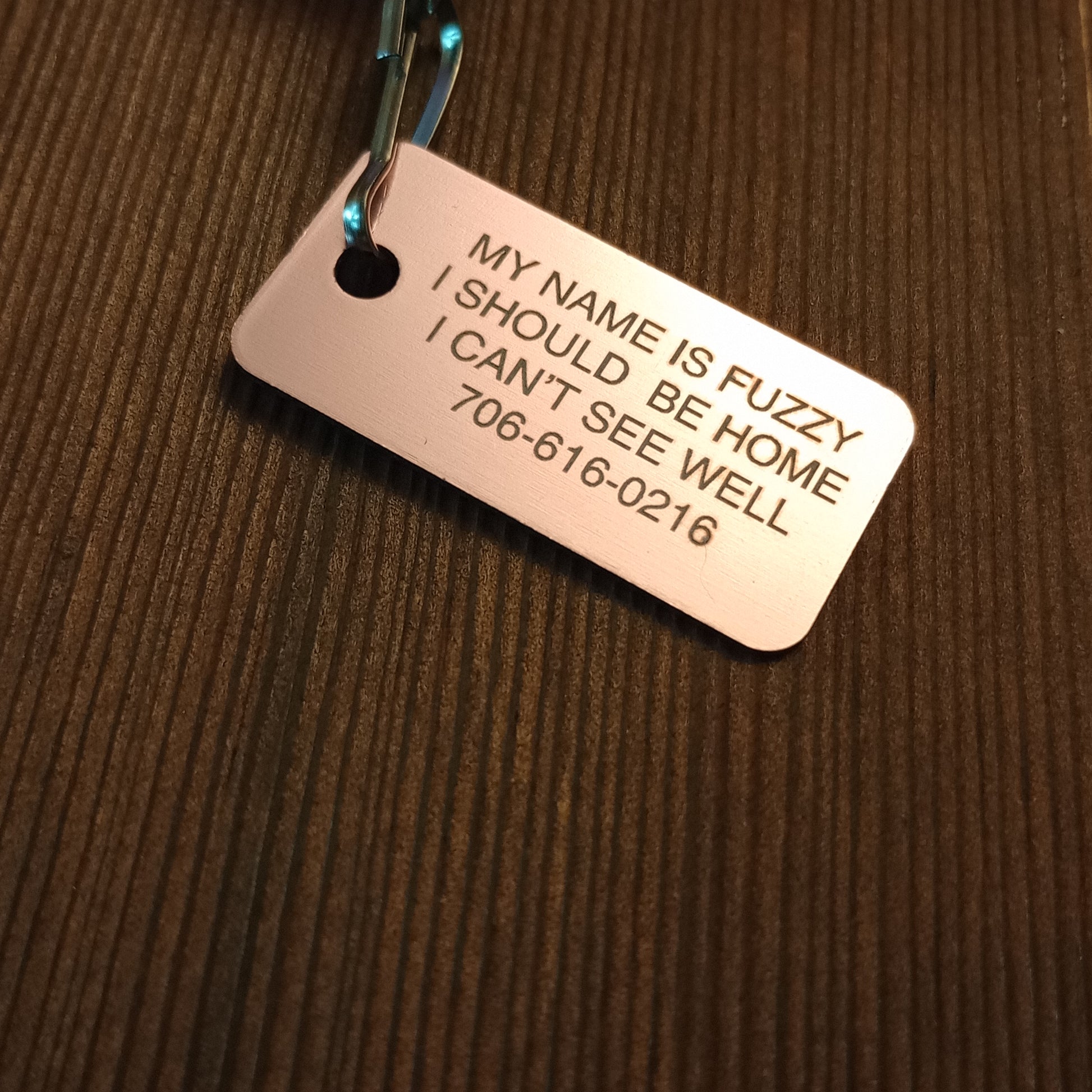 Name only: If you want the name as large as possible on one side of the tag, we will utilize all available space to engrave the name to make it look as nice as we can.