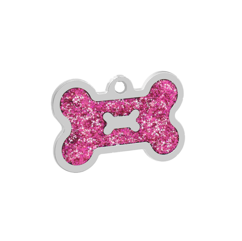 Pink Glitter Bone Shaped Pet Tag