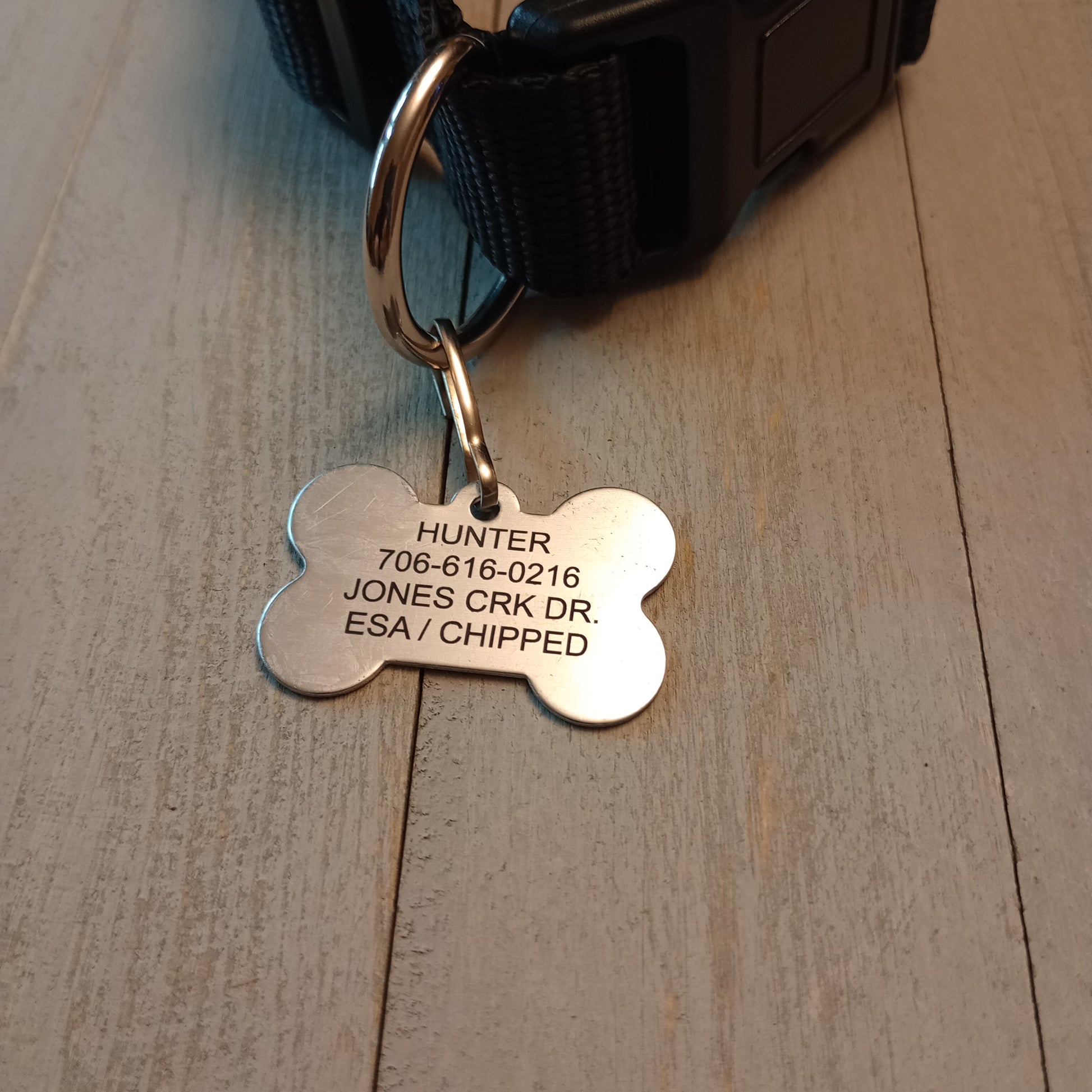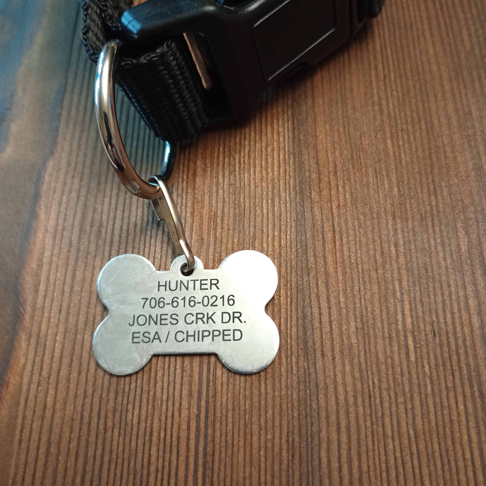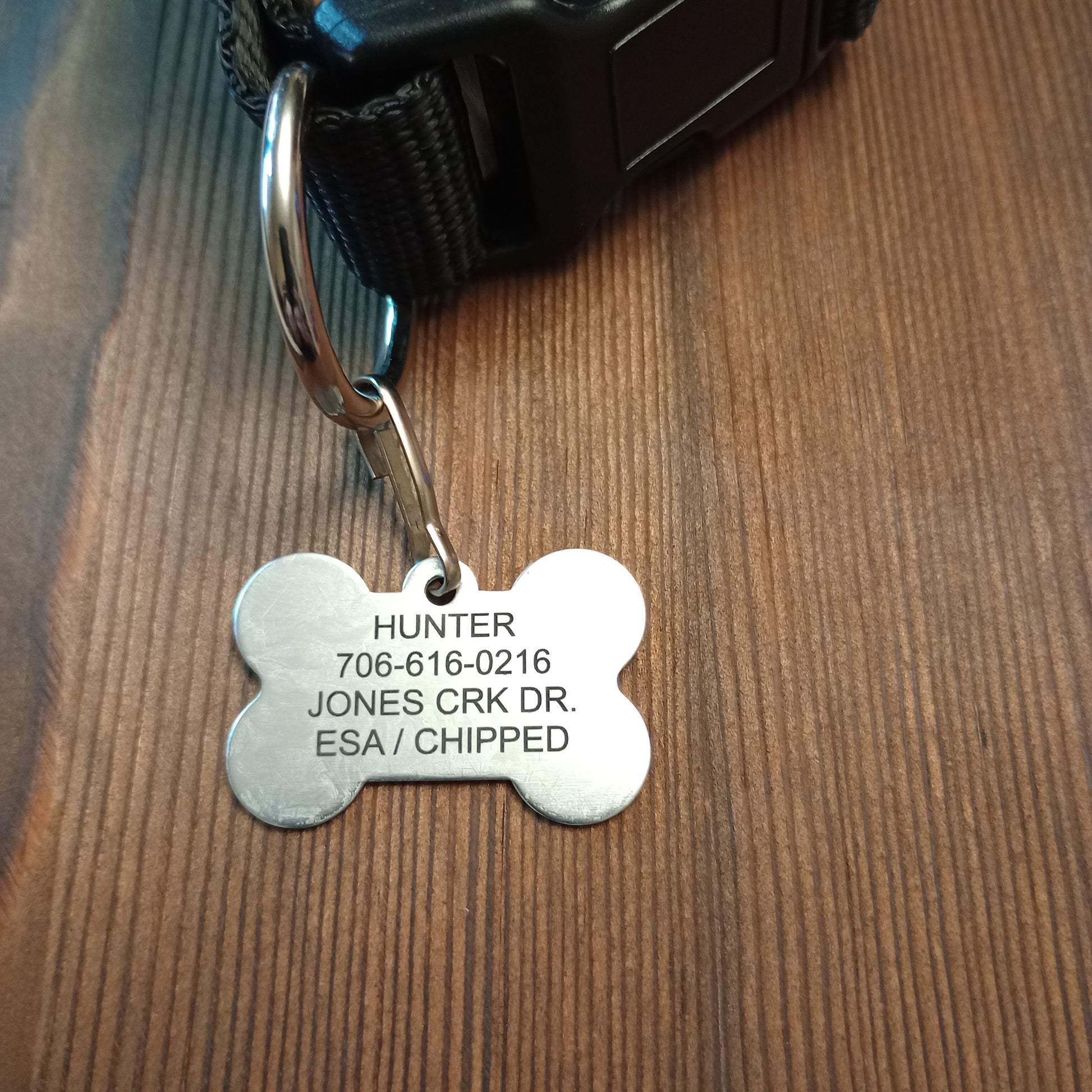 Maximum text limits: If you have more text that you would like to fit on the tag than the online store allows for the customization, reach out to us using the contact page at the top of the site. The limits are typically set so that the text can look good based on the engravable area for the pet tag. In most cases, we can add a lot more text, but the size of the text will have to decrease due to the engravable space.