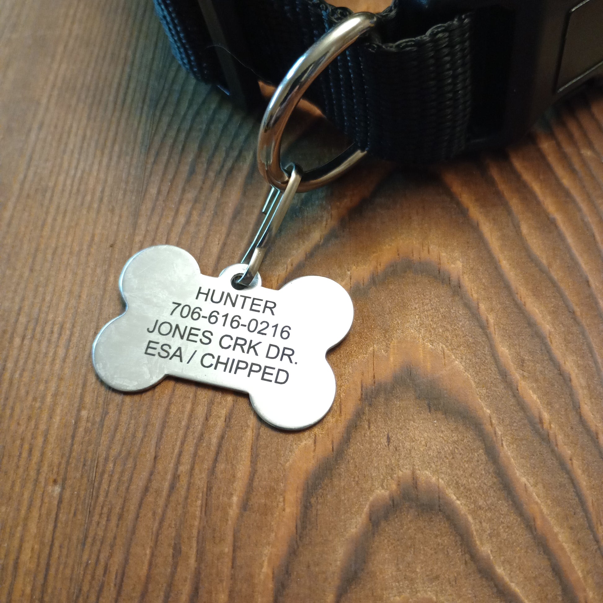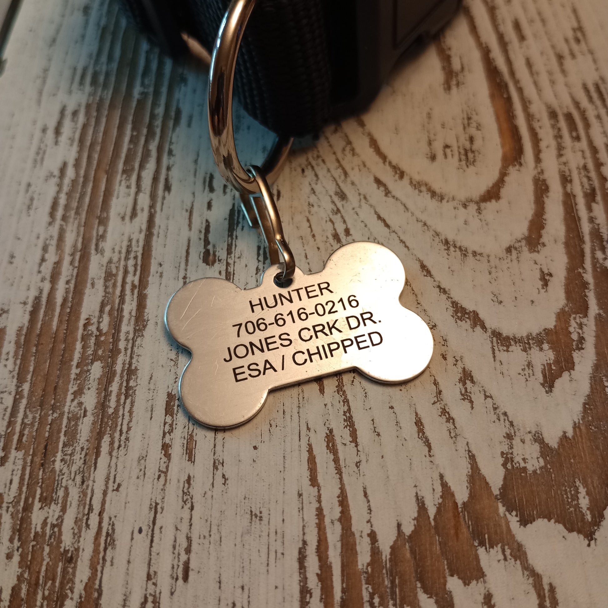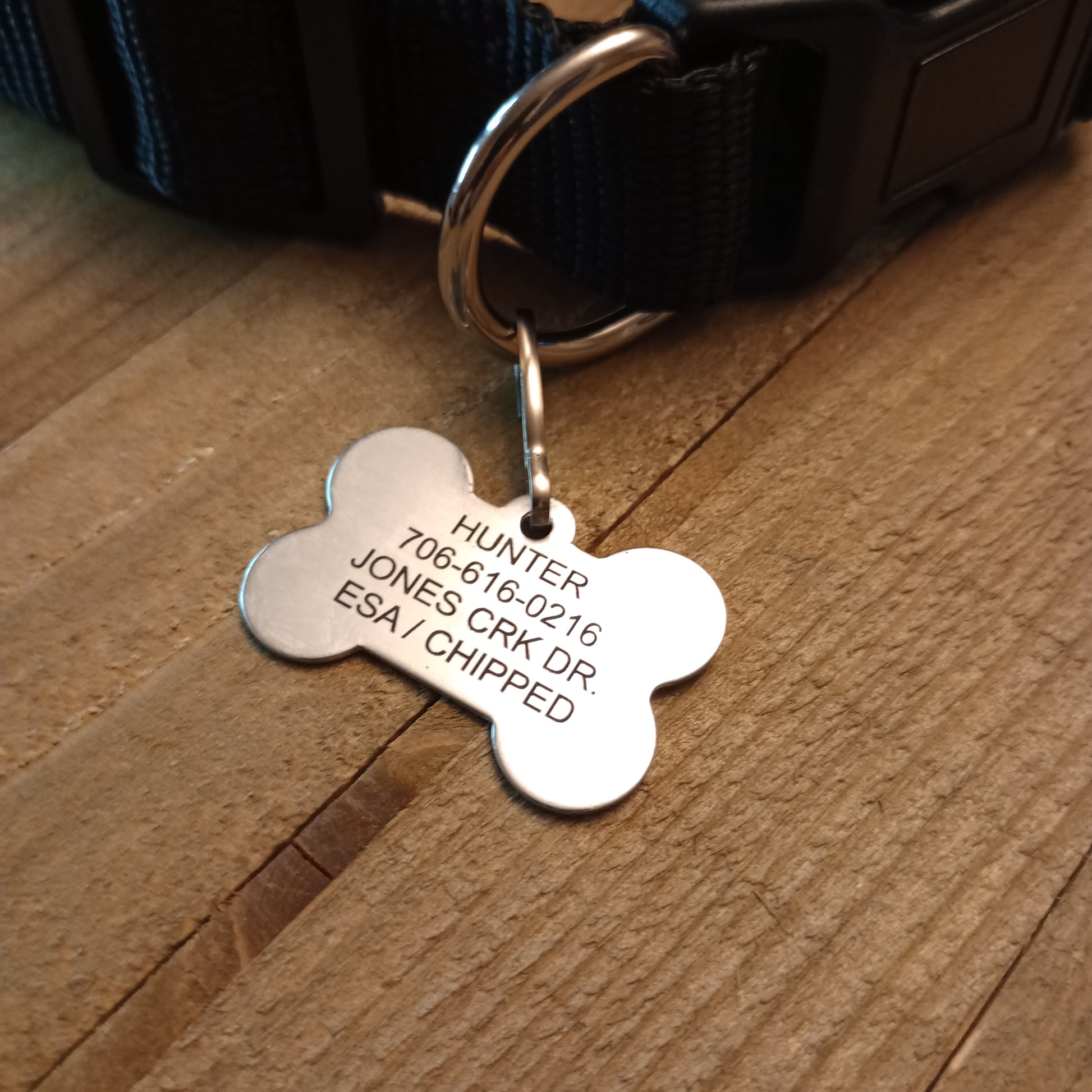 Maximum text limits: If you have more text that you would like to fit on the tag than the online store allows for the customization, reach out to us using the contact page at the top of the site. The limits are typically set so that the text can look good based on the engravable area for the pet tag. In most cases, we can add a lot more text, but the size of the text will have to decrease due to the engravable space.