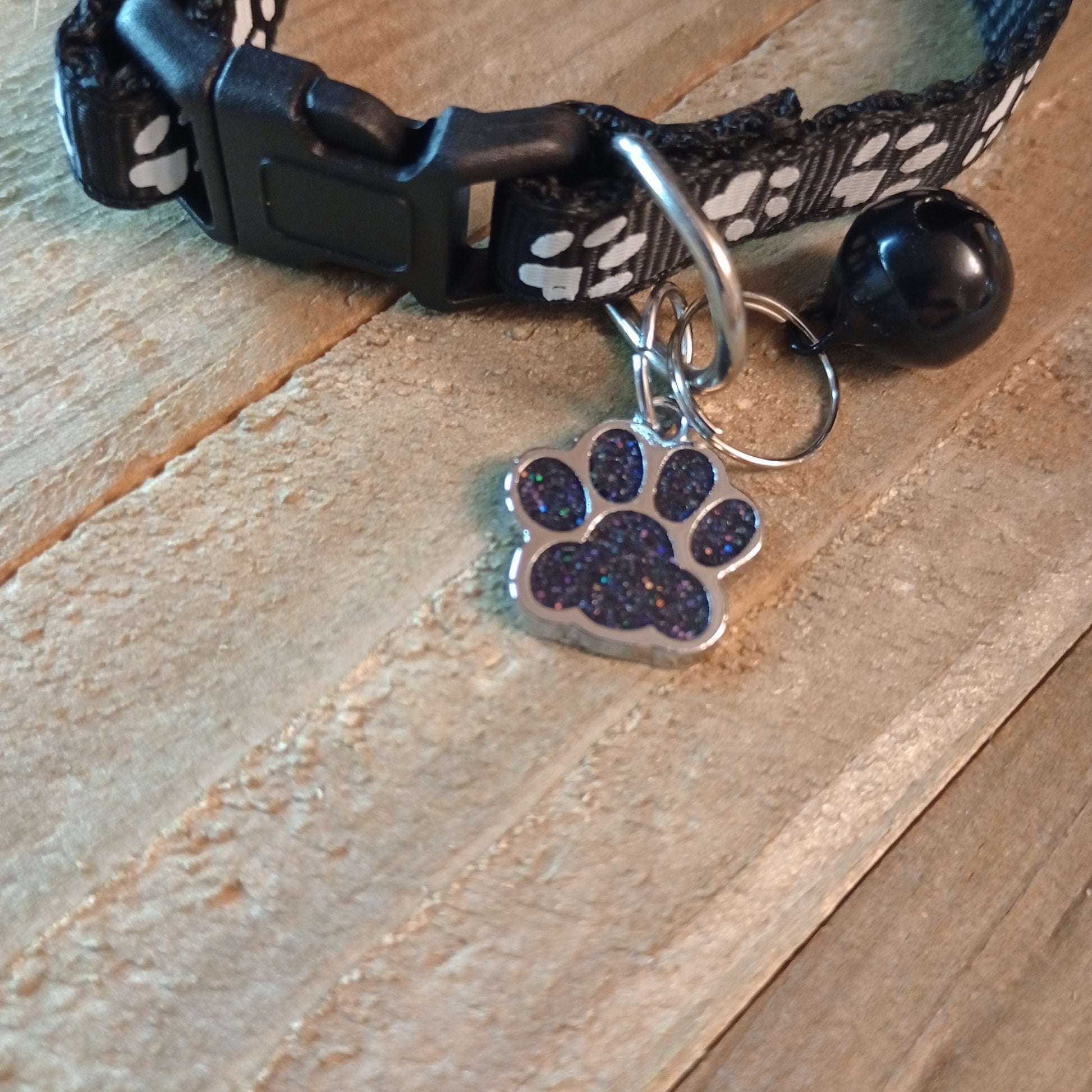 Black Glitter Paw Pet Tag (.7 inch)